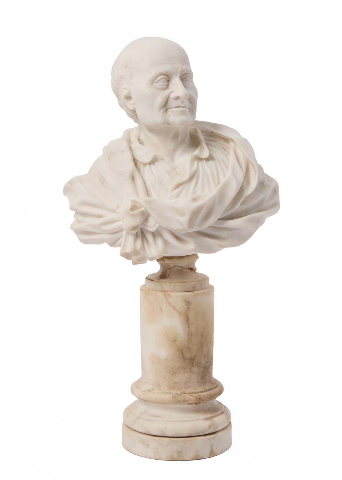 Portrait de Voltaire en marbre sculpté signé A.Rosset Fecit.