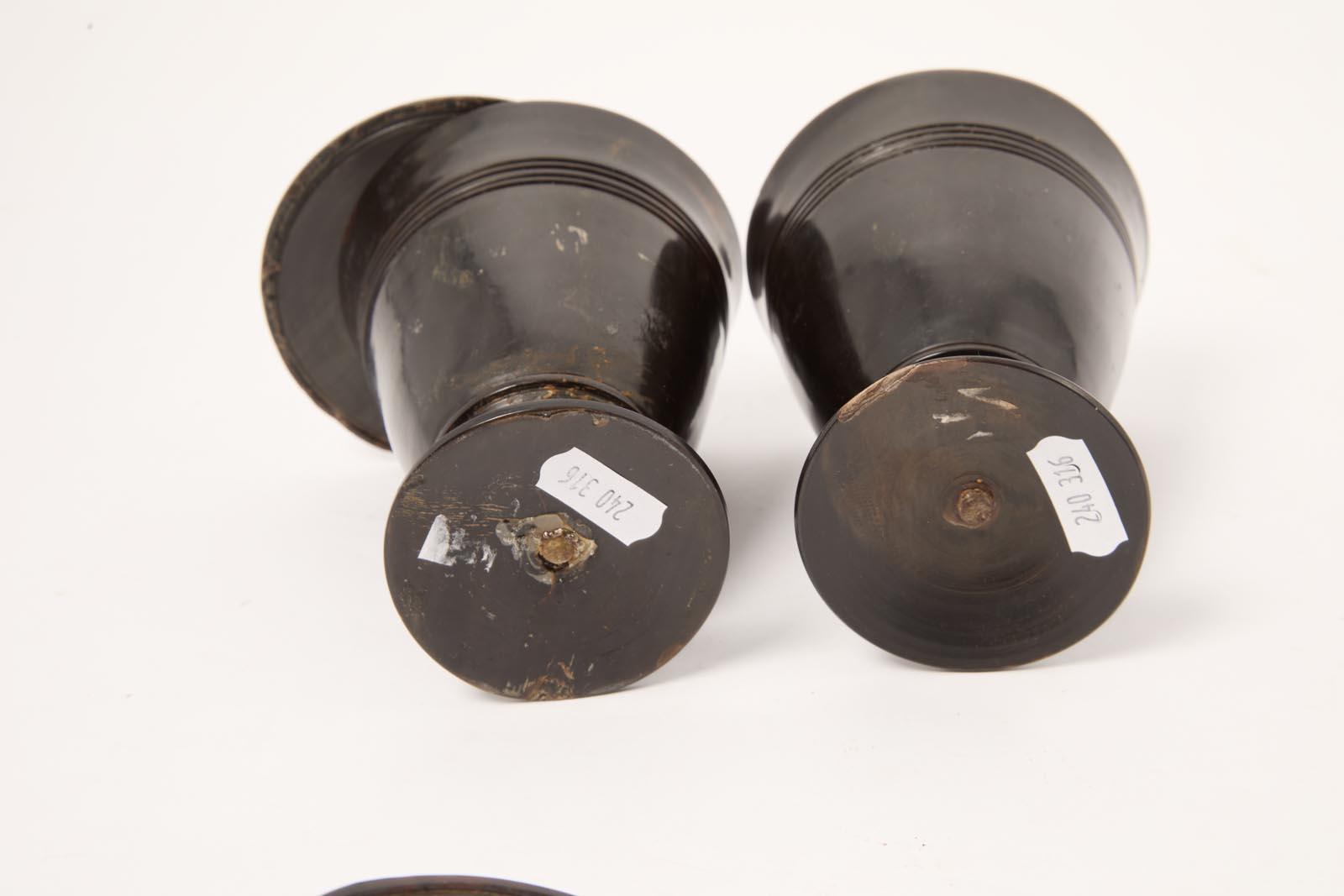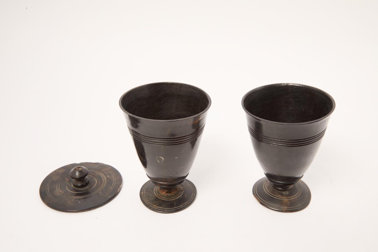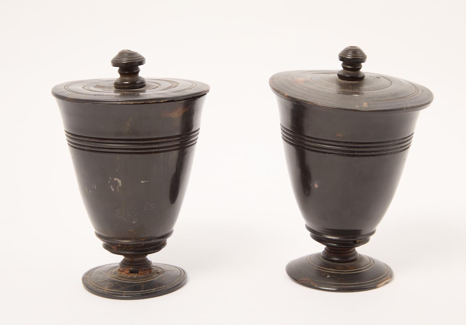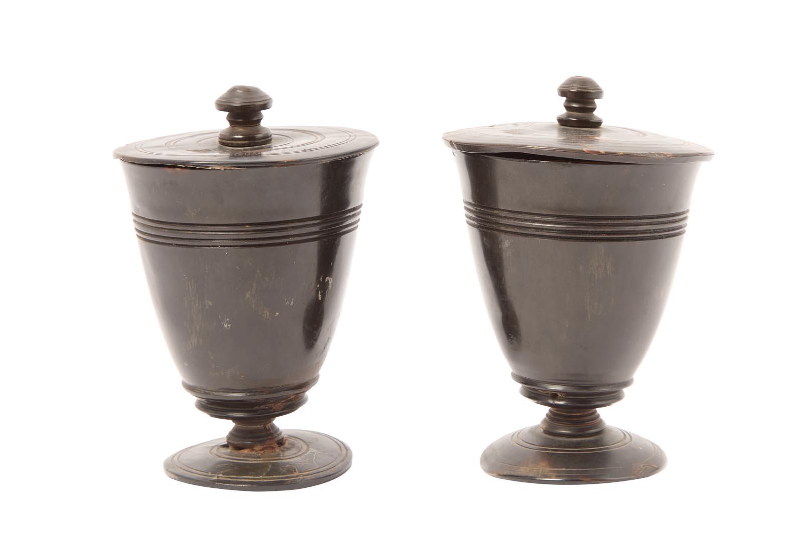 Lot n°155 - 155 Paire de pots couverts balustres sur piédouche en corne à décor de filets mo