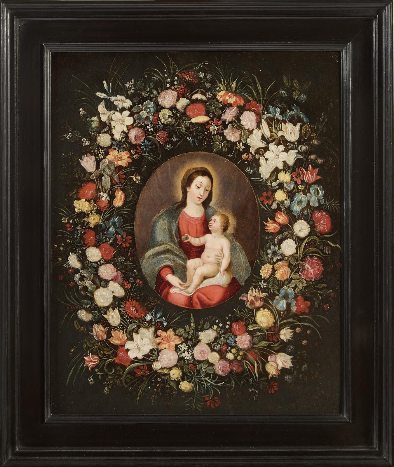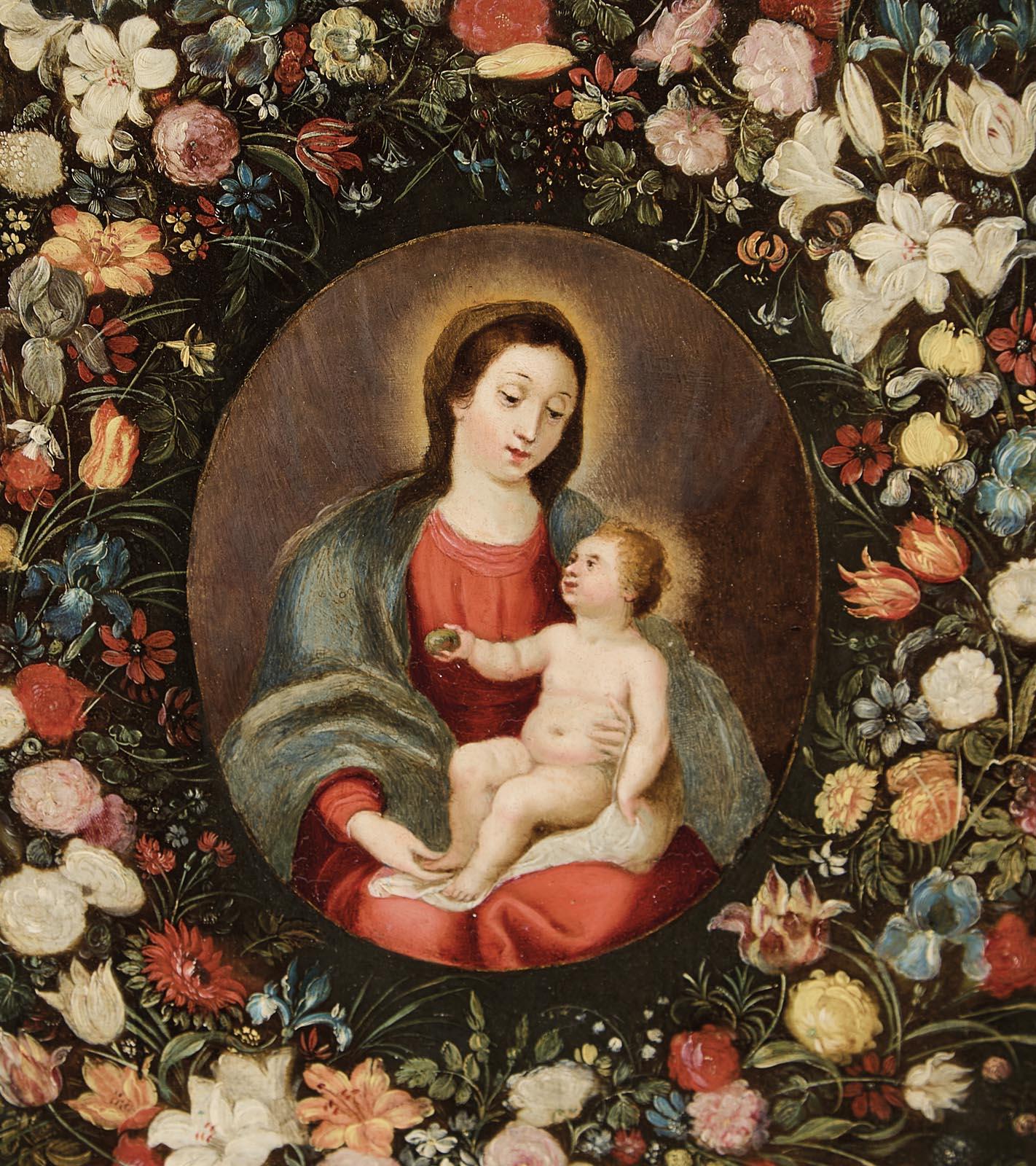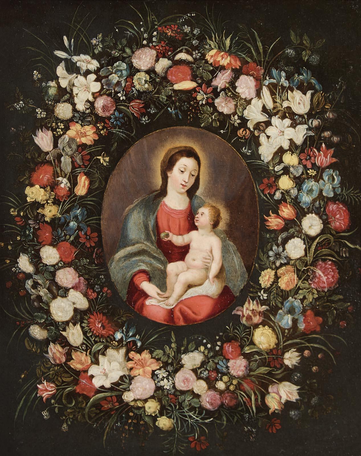 Vierge à l’Enfant dans une guirlande de fleurs