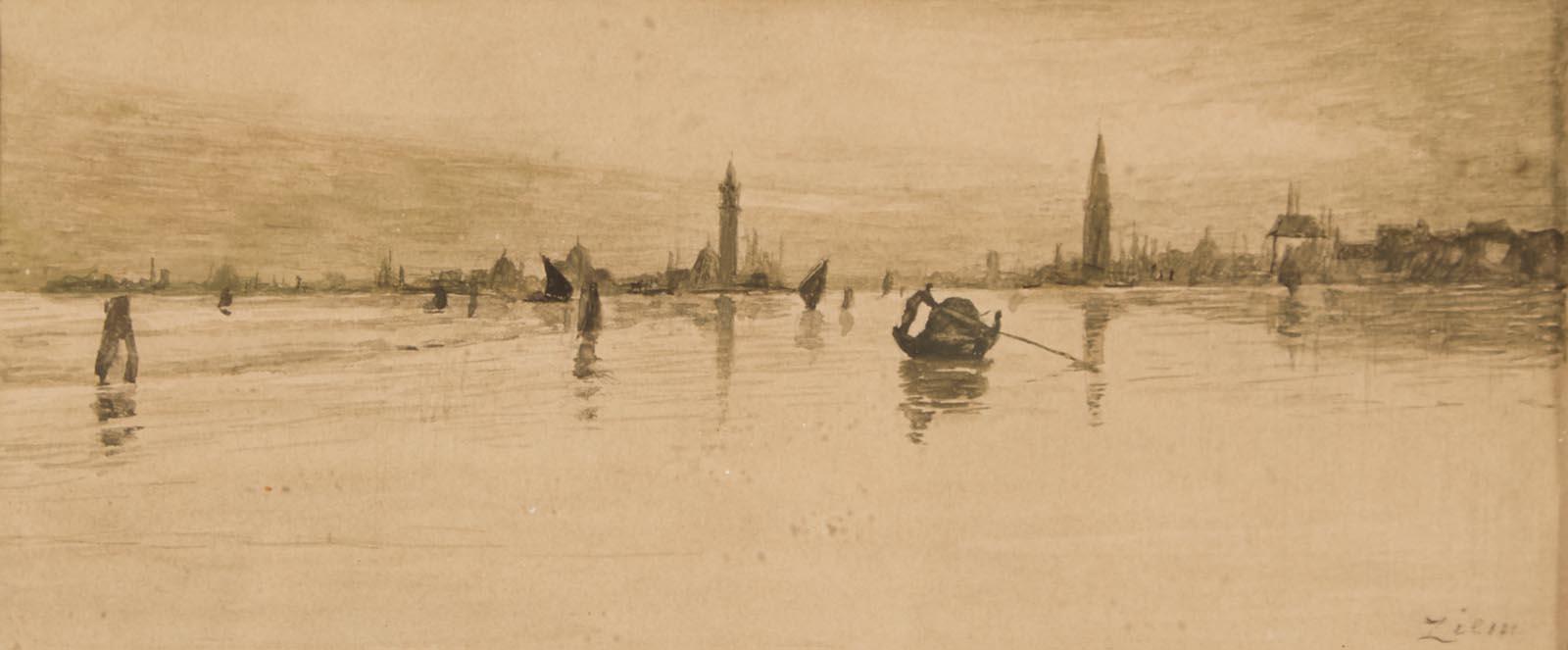 Lot n°416 - 416 Félix ZIEM ( 1821-1911 ) Vue de Venise Encre et