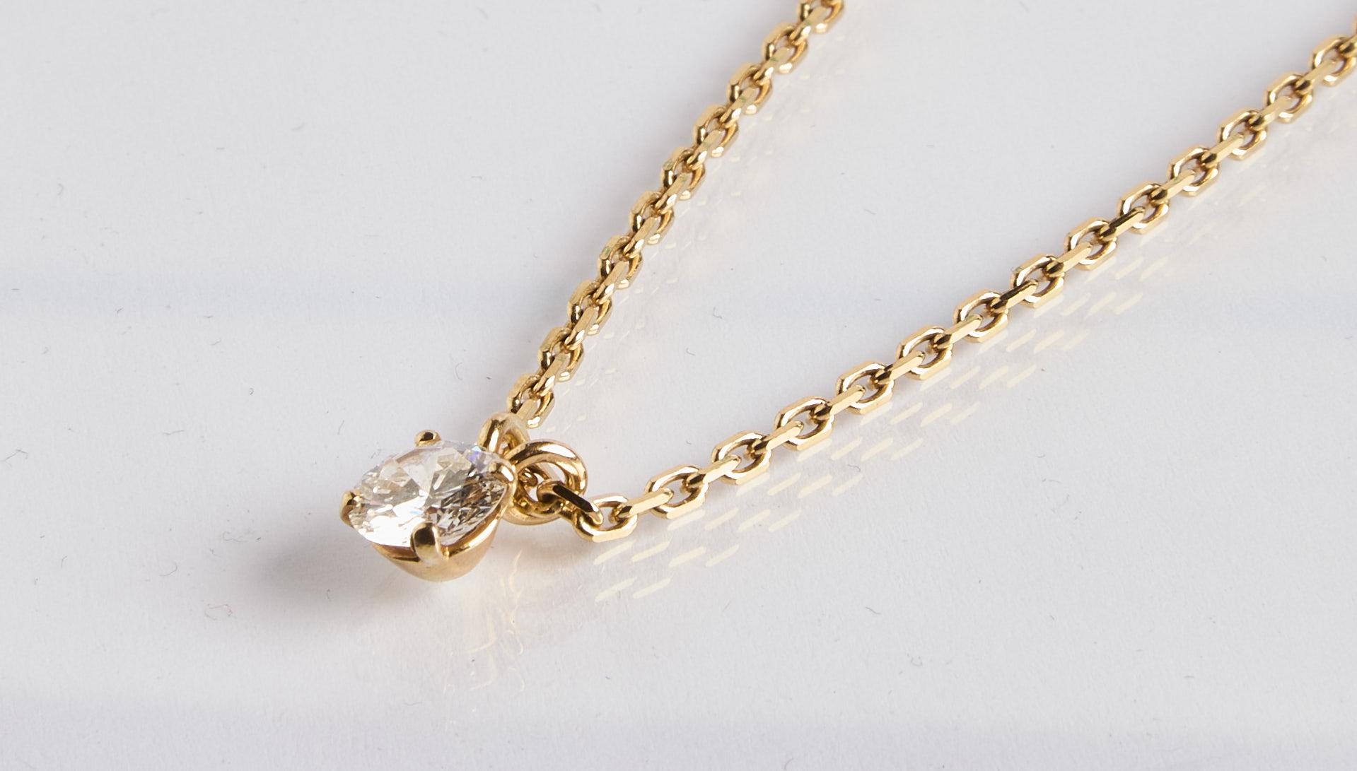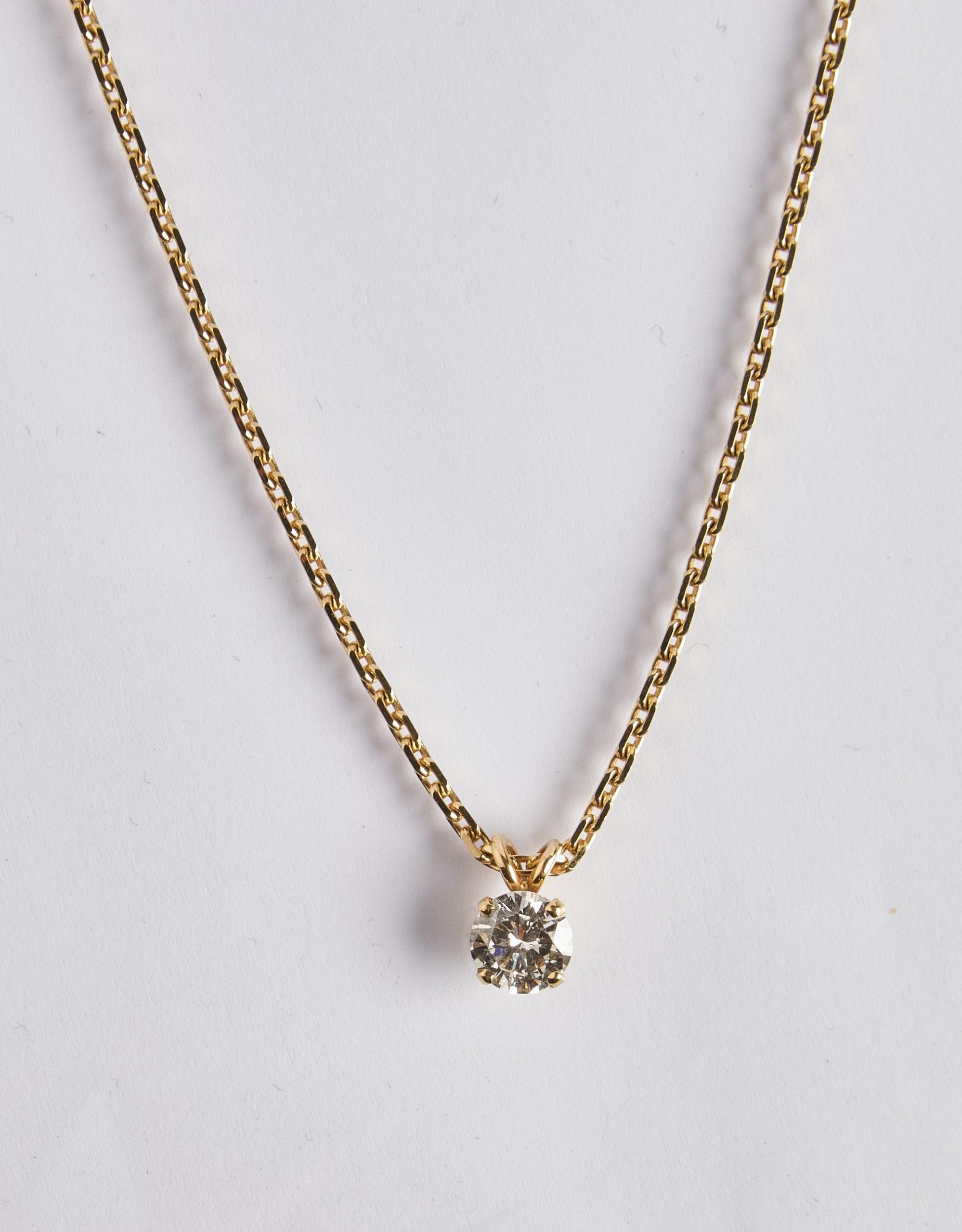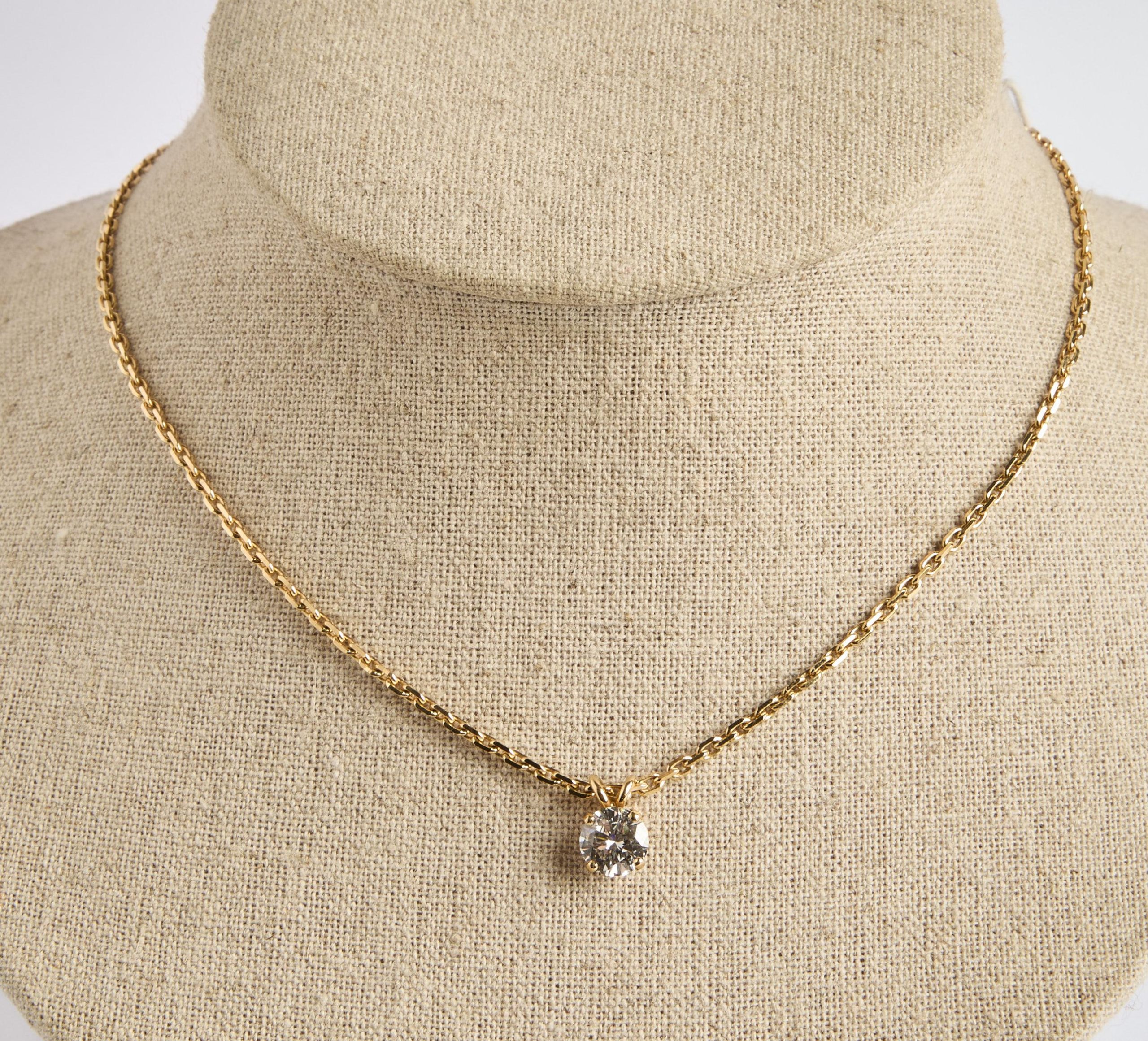 Lot n°177 - 177 Chaine de cou en or jaune ornée d’un diamant de 1,31 ct accompagné d’un cert