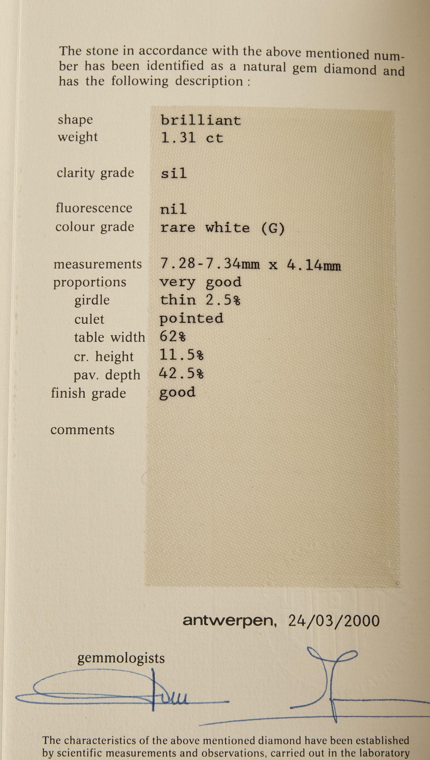 177 Chaine de cou en or jaune ornée d’un diamant de 1,31 ct accompagné d’un certificat du HRD attestant d’une couleur G et d’une pureté Si1, tour de cou 39 cm, on joint 5 cm de chaine d’or, poids 9,7 g