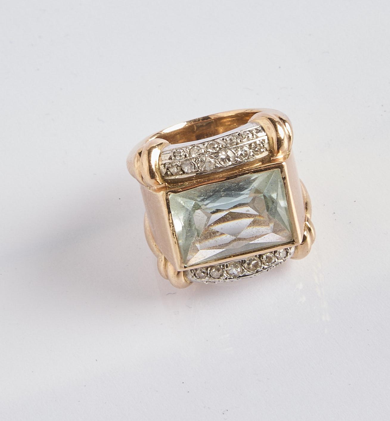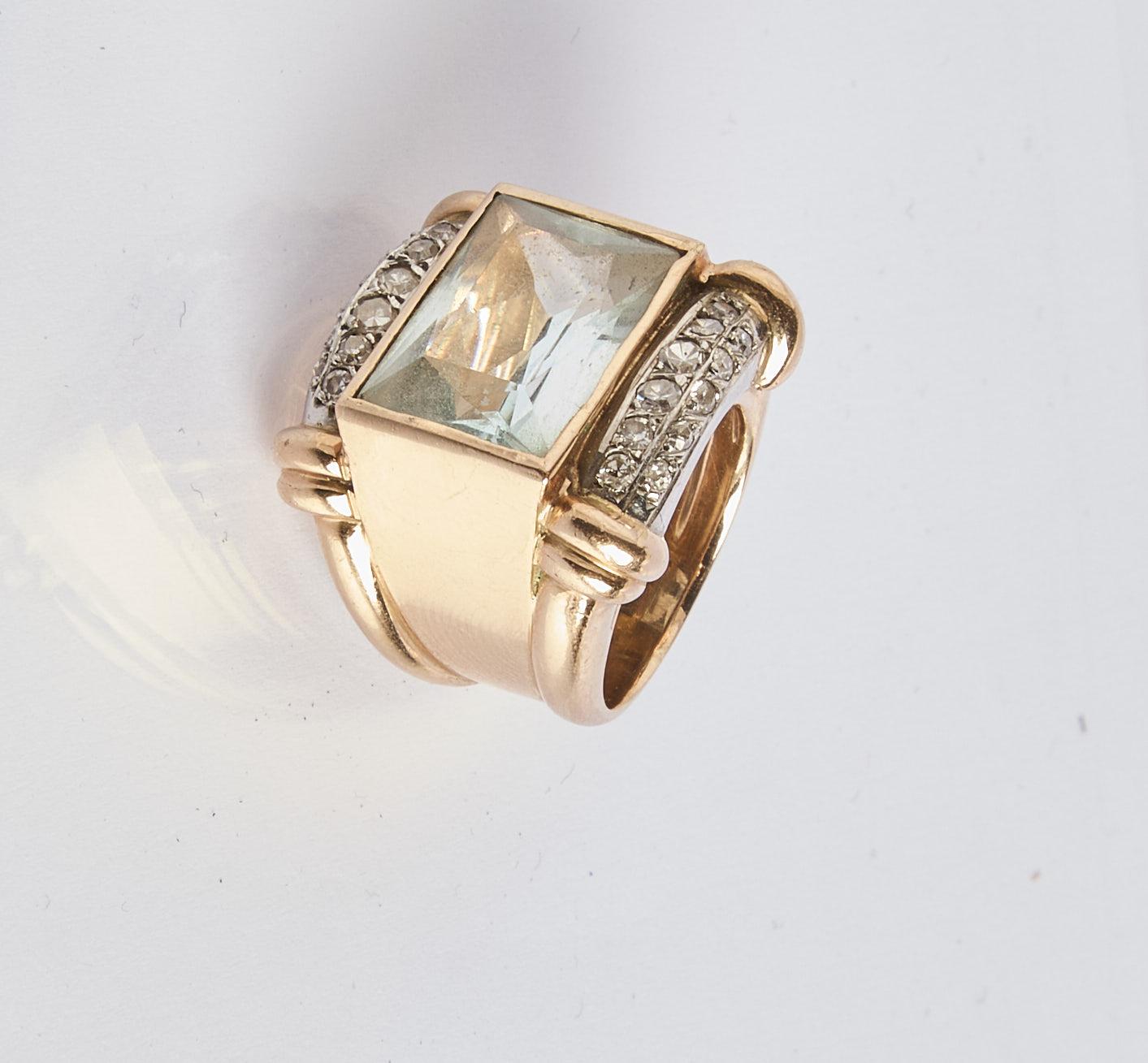 Lot n°307 - 307 Bague en or et platine sertie d’une grande aigue-marine et de diamants, Tour