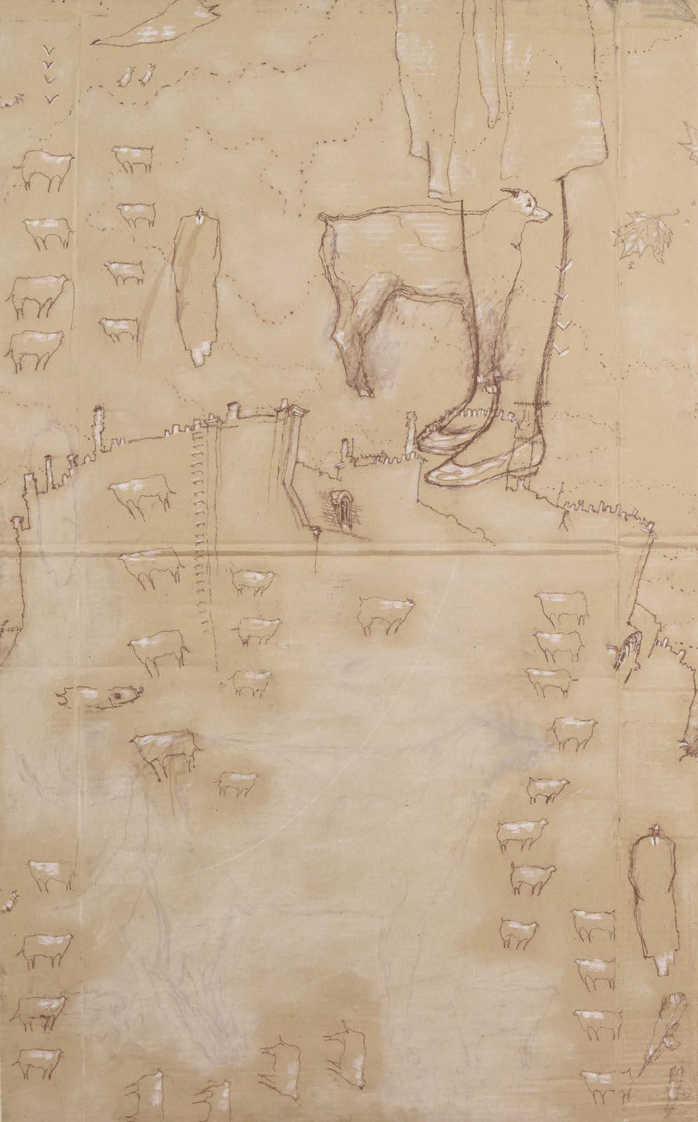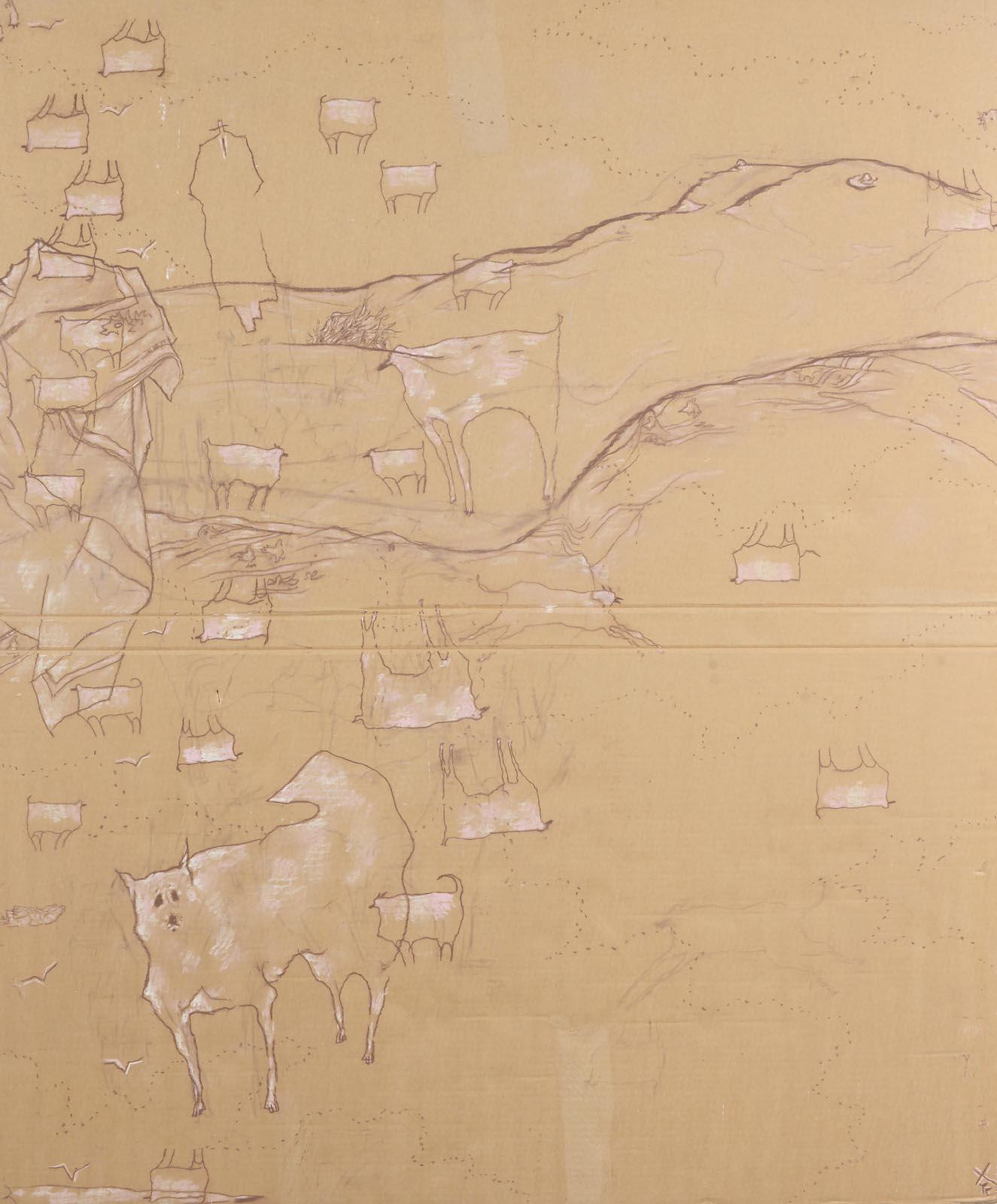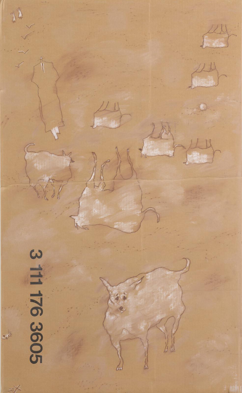 Ensemble de 3 techniques mixtes (craie et sanguine) sur carton déployé