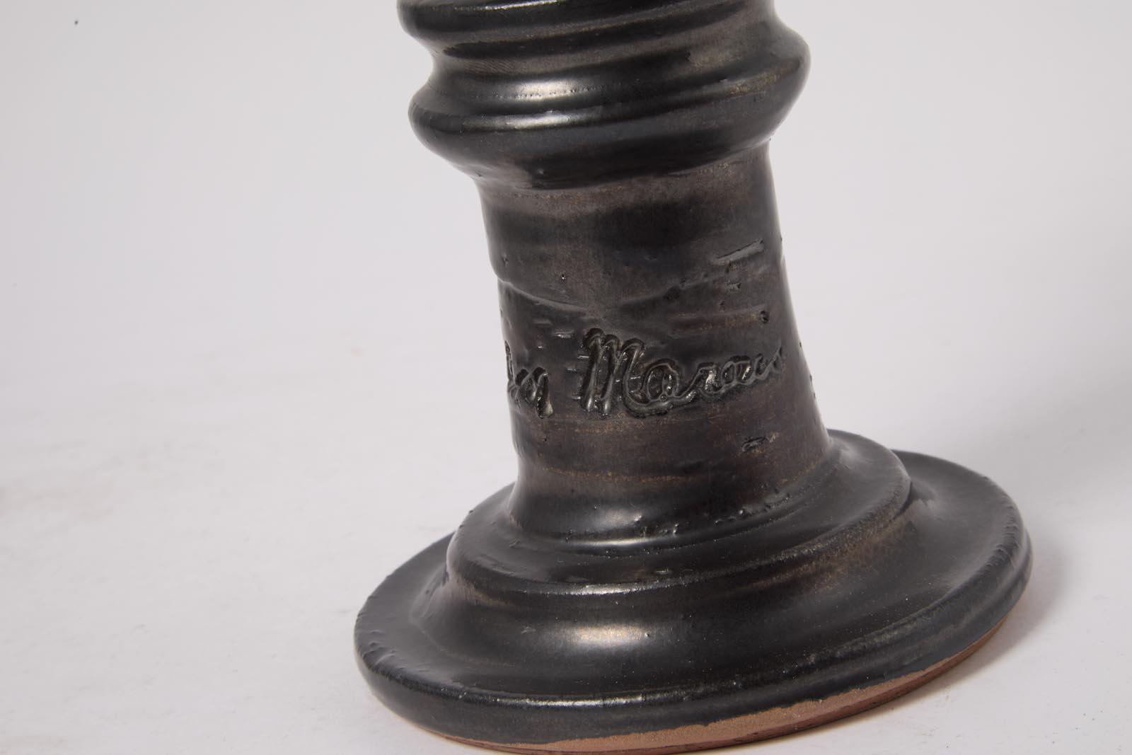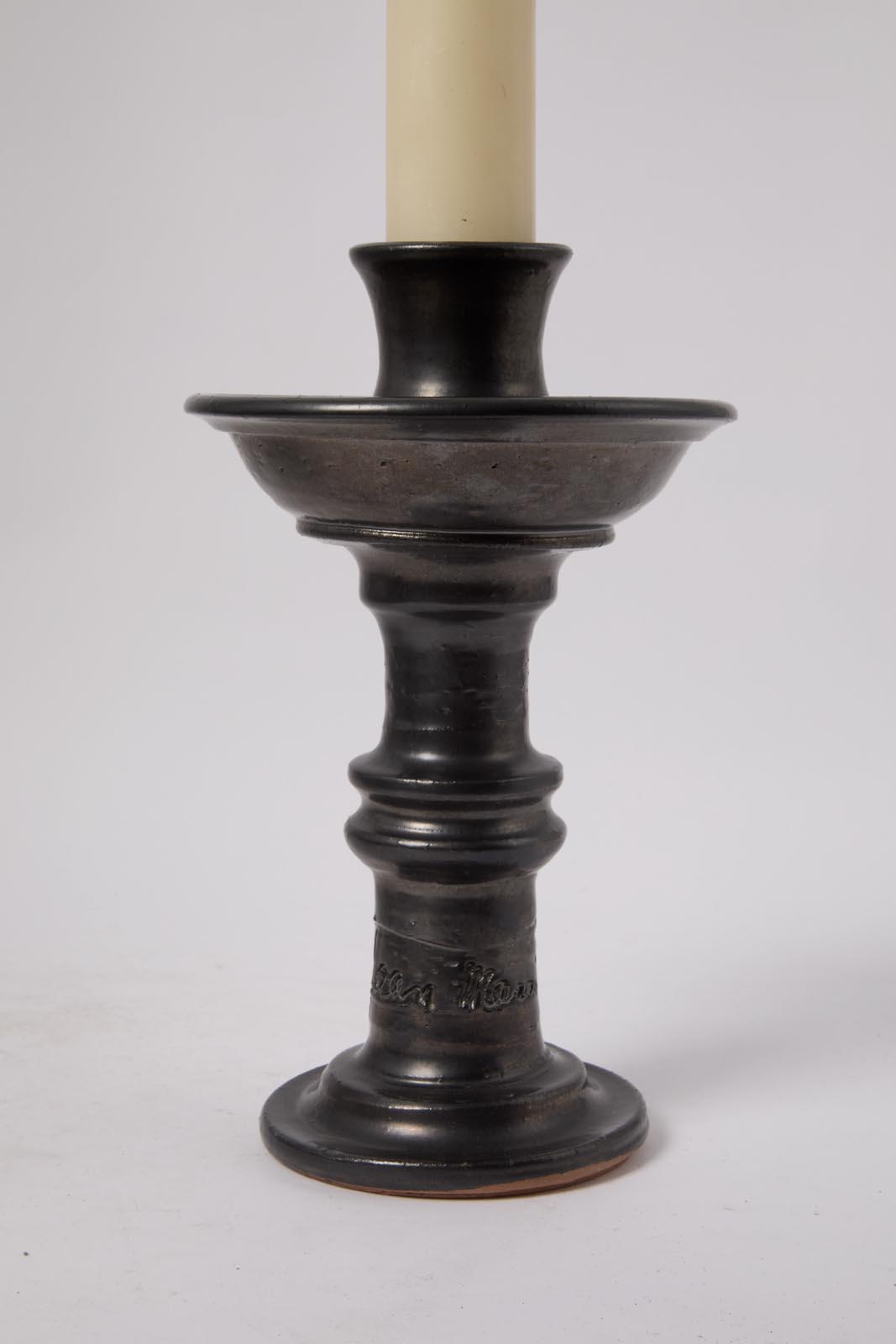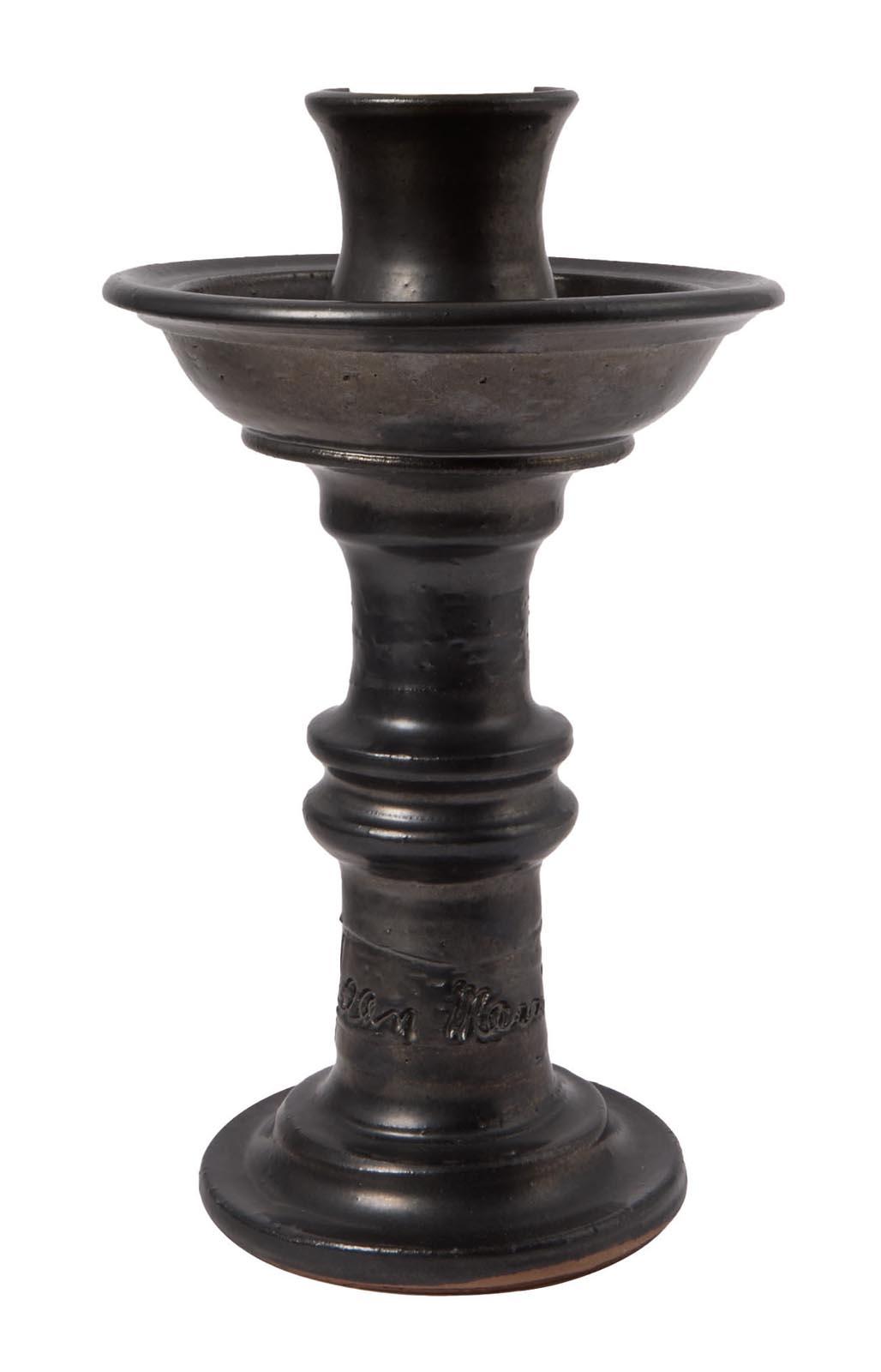 Lot n°367 - 367 Jean MARAIS (1913-1998) Grand bougeoir en terre cuite vernissée noire.