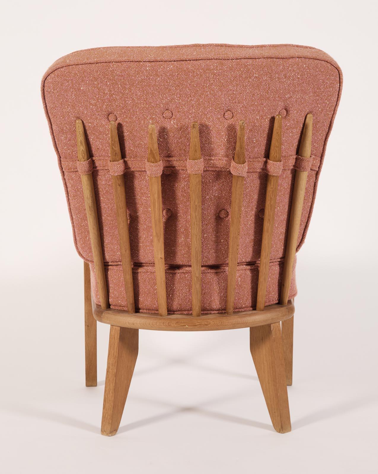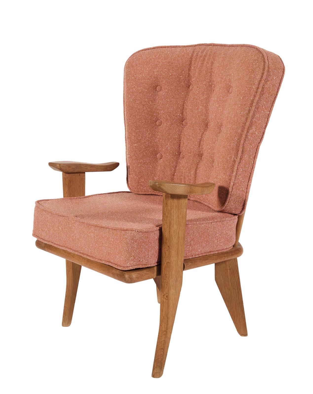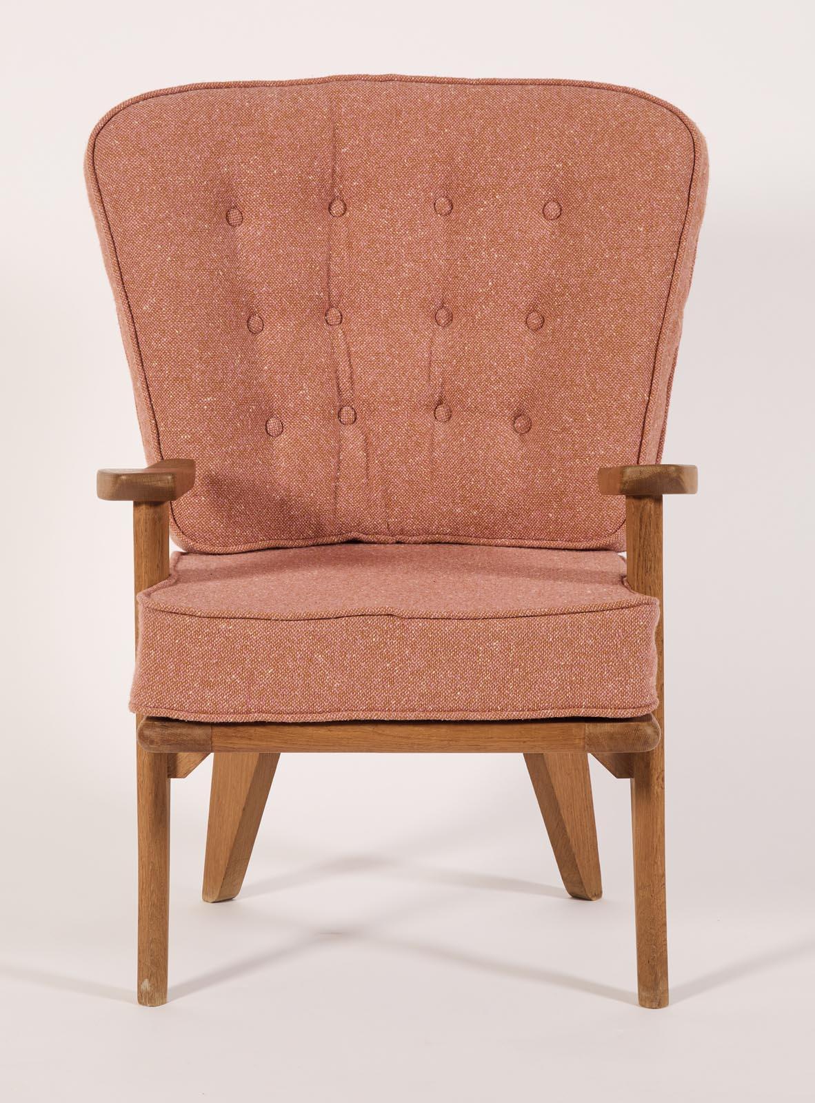 Fauteuil en chêne clair, modèle Catherine, à garniture rose.