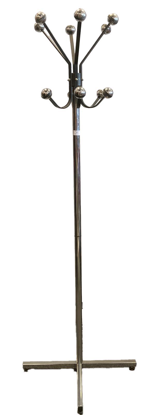Lot n°672 - Porte manteau en inox à 6 patères à terminaison en boule.