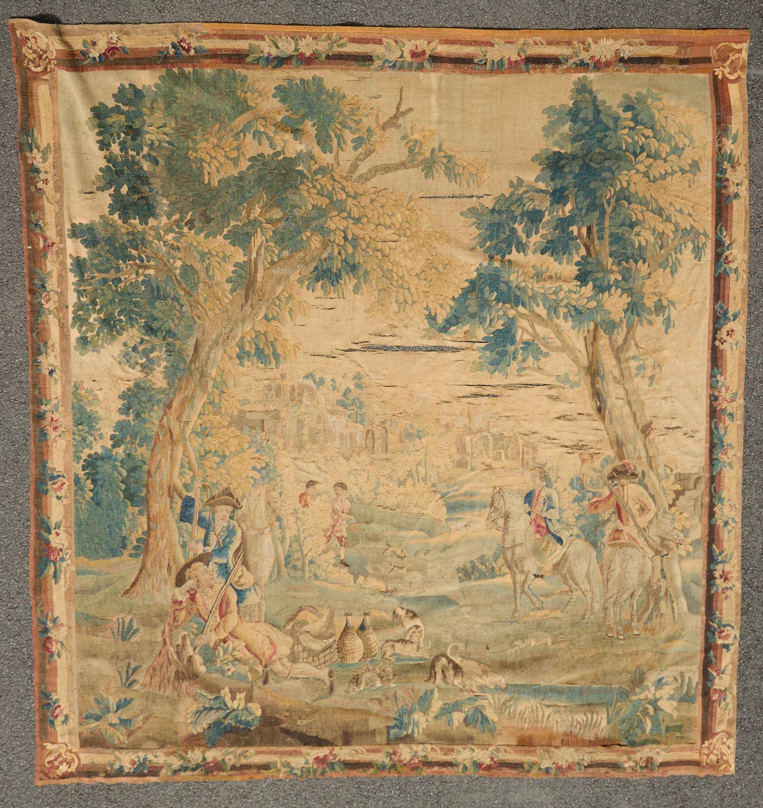 Lot n°571 - AUBUSSON, XVIIIe siècle Scène de chasse 258 x 234 cm. En