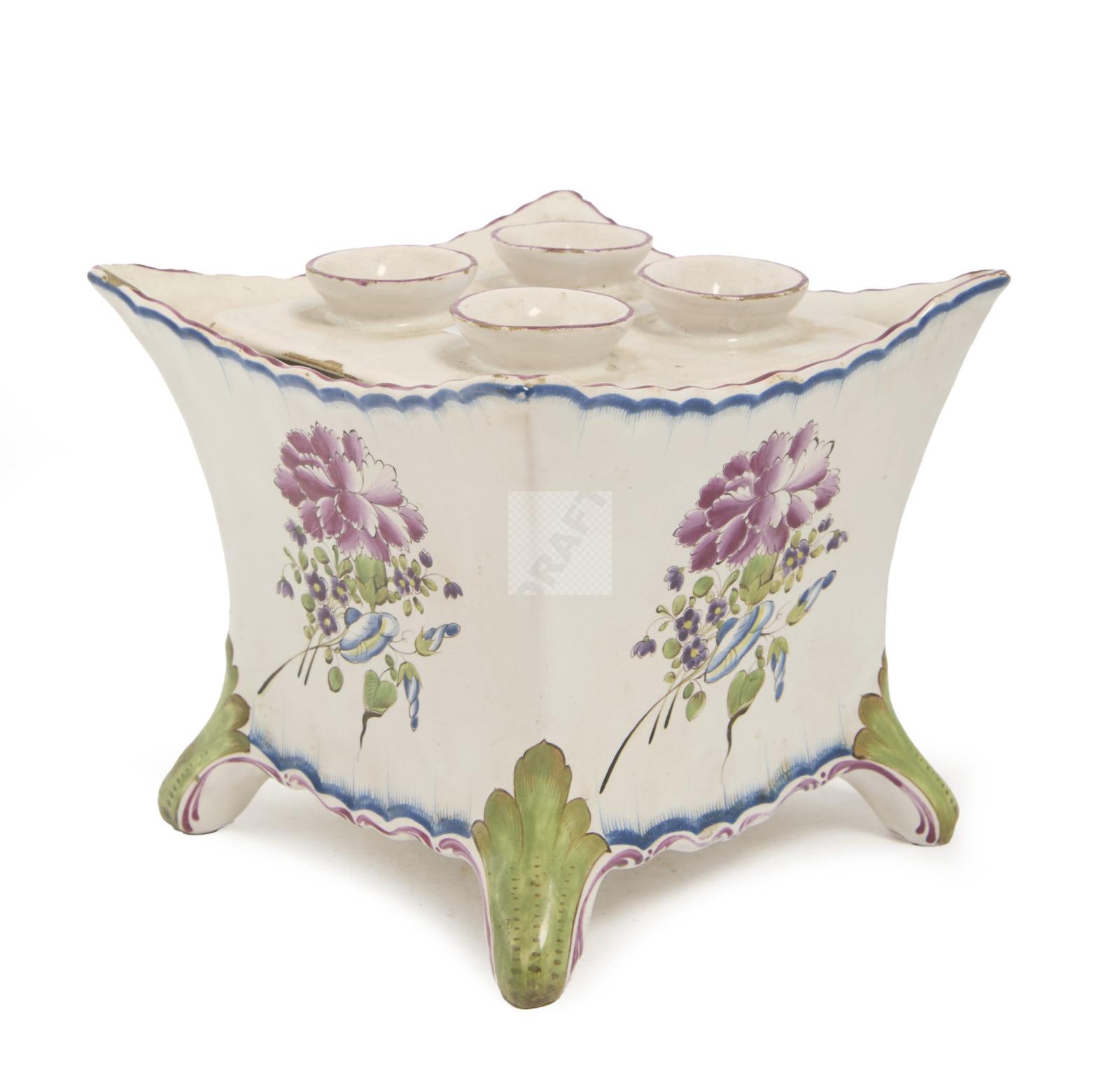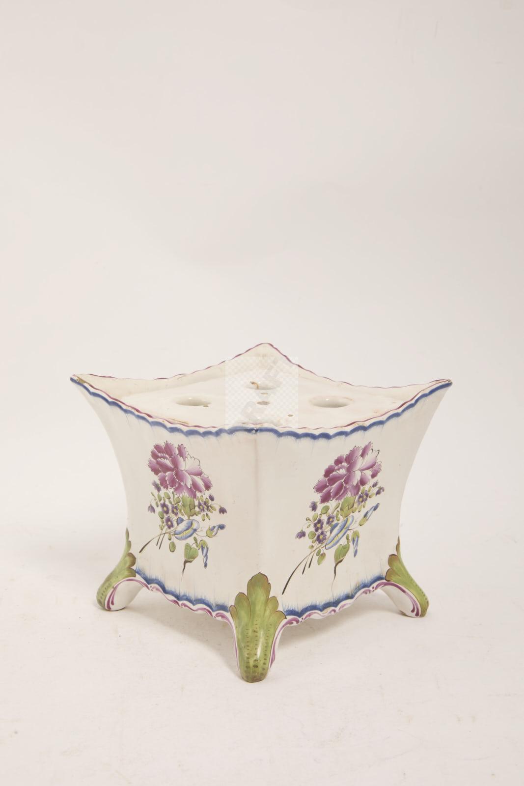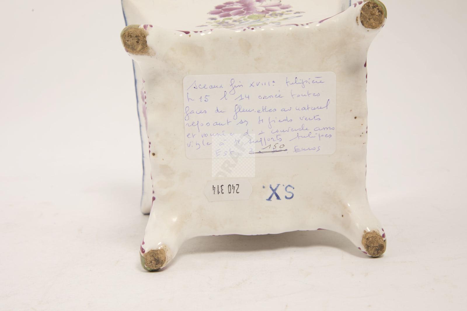 Lot n°39 - 39 Sceaux Bouquetière en faïence stannifère polychrome à décor de fleurs