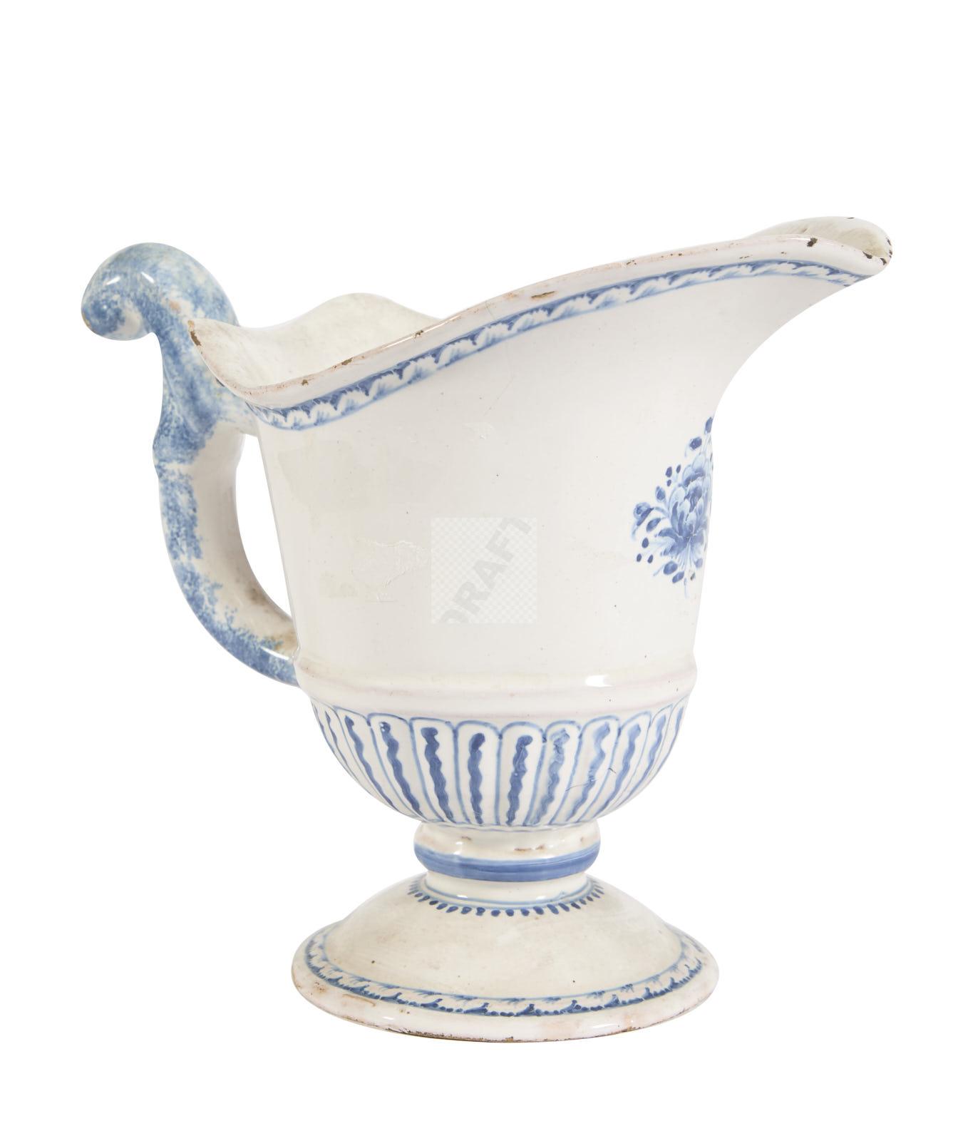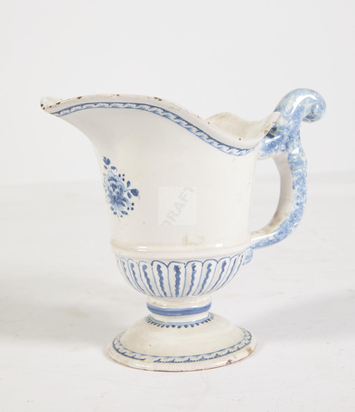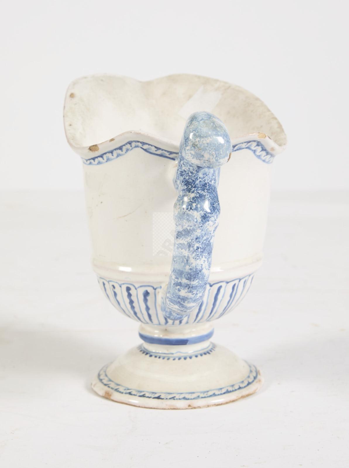 Lot n°47 - 47 Aiguière casque En faïence camaïeu bleu à décor de jeté