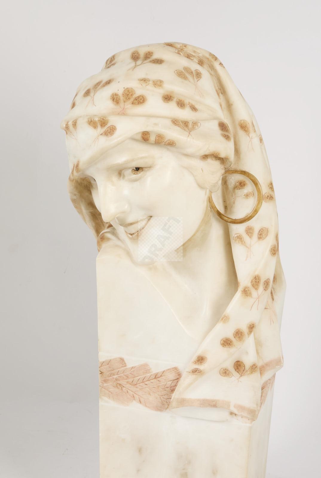 Lot n°120 - 120 Guisto VITI (XIX-XX) Jeune fille au fichu Sculpture en albatre