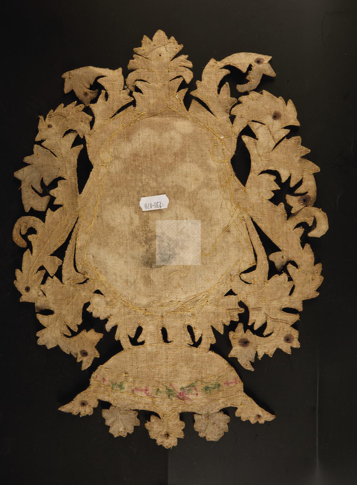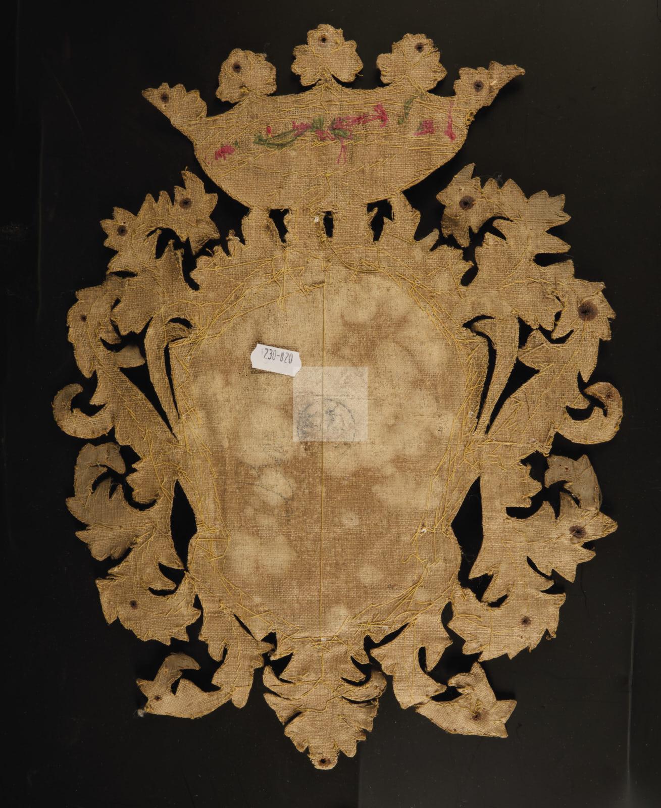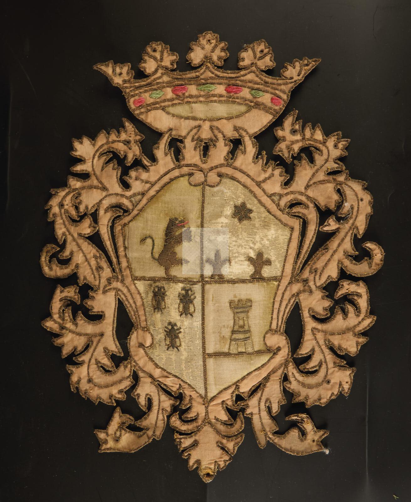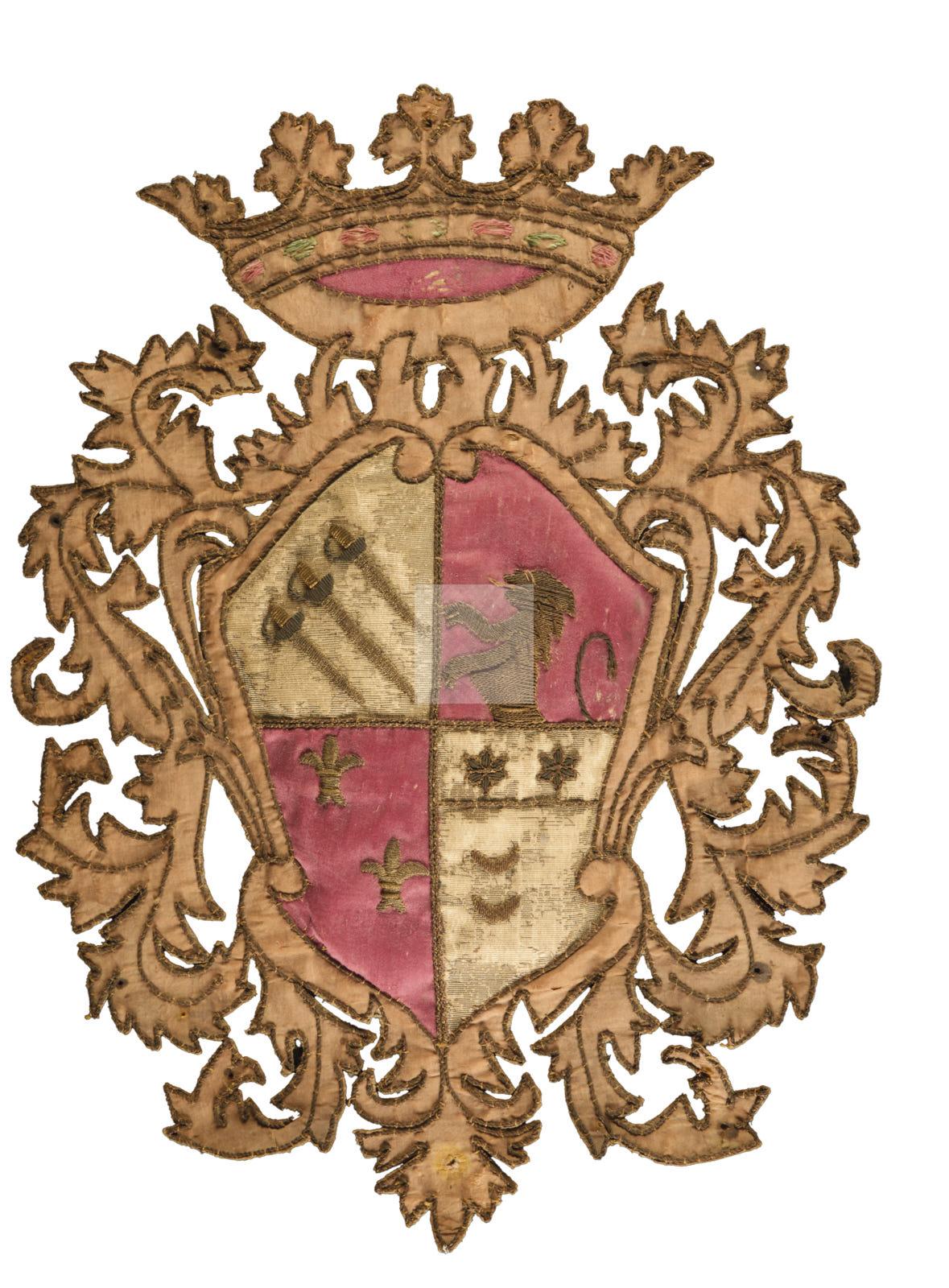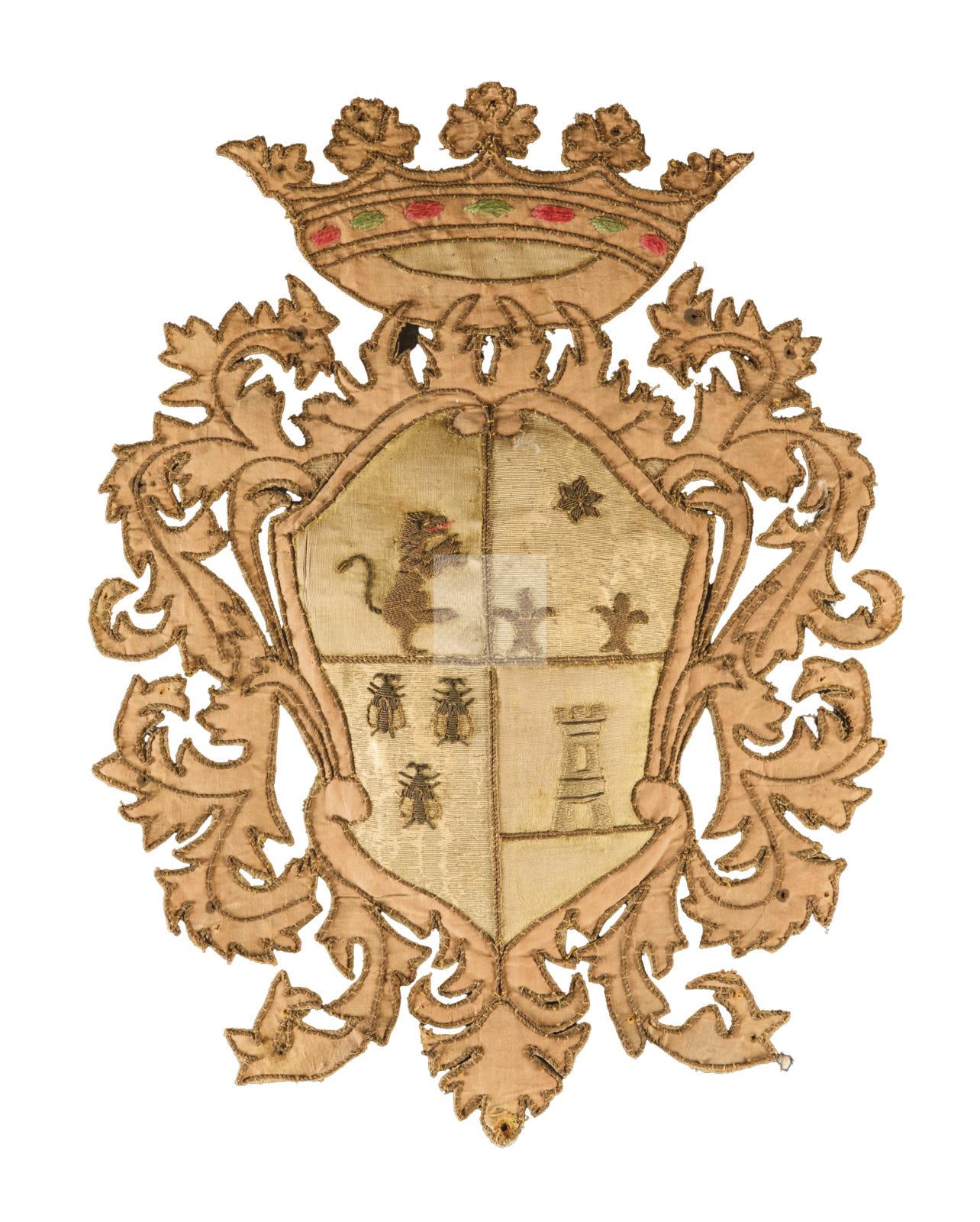 Lot n°142 - 142 Paire de broderies figurant des armoiries soulignées de fils d’or et d’argen