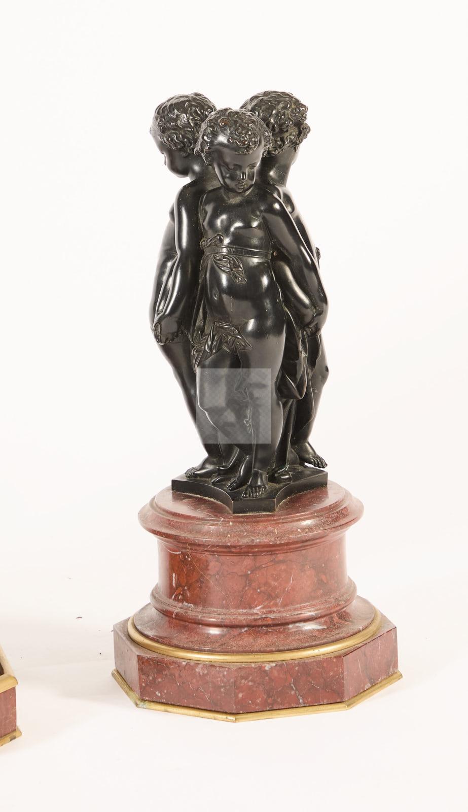 – deux sculptures à décor de triple enfants adossés reposant sur des demi-colonnes tronqués