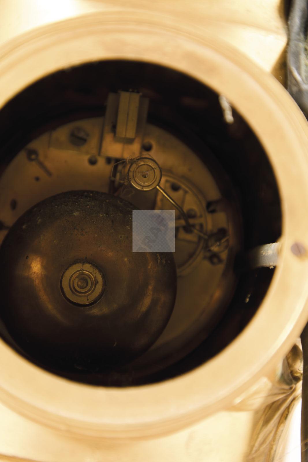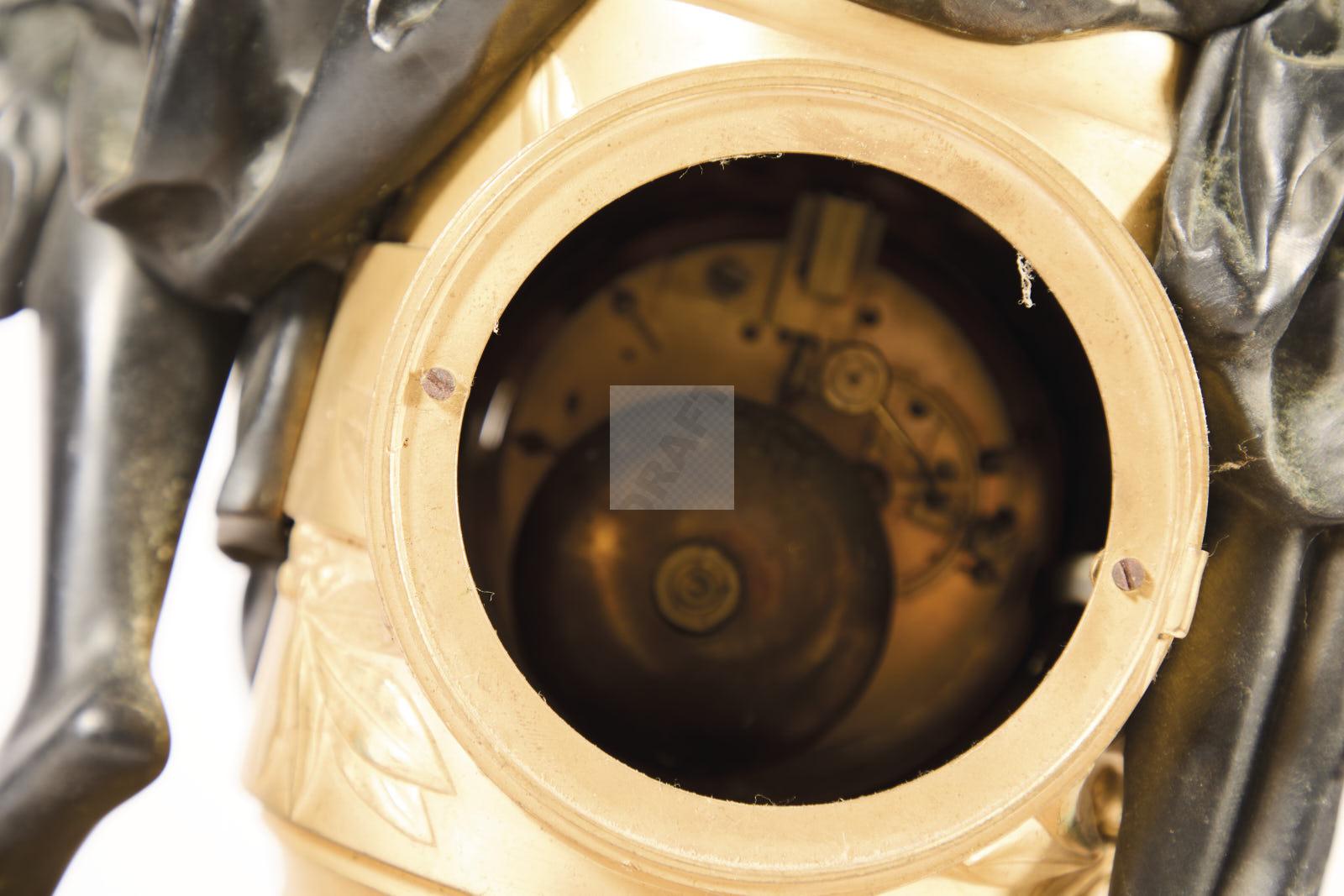 Lot n°247 - 247 Garniture de cheminée en bronze patiné bronze ciselé et doré et marbre griot