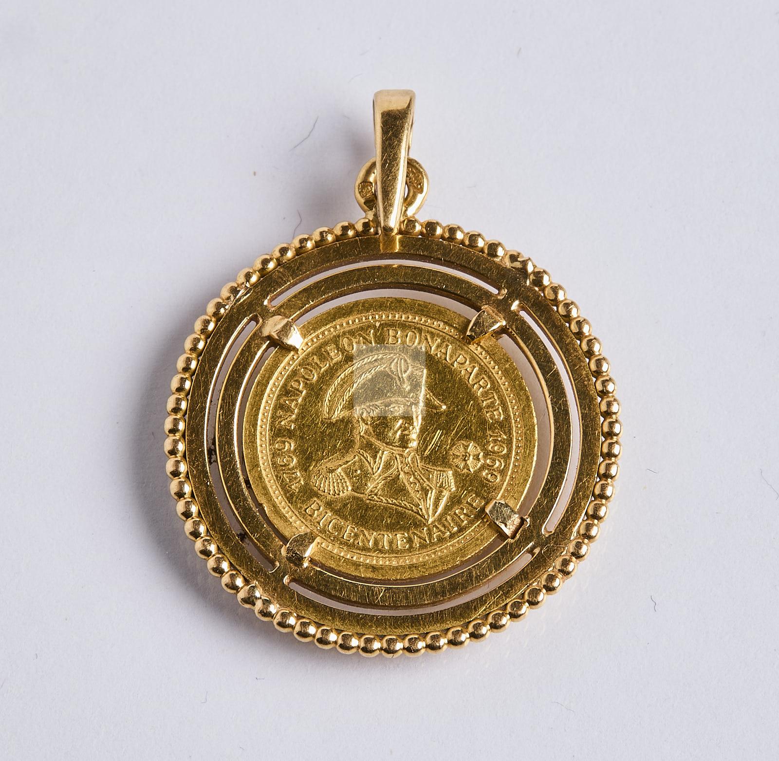 Lot n°74 - 74 Pendentif contenant une médaille en or 24K Napoléon Bicentenaire de 1969 de 3