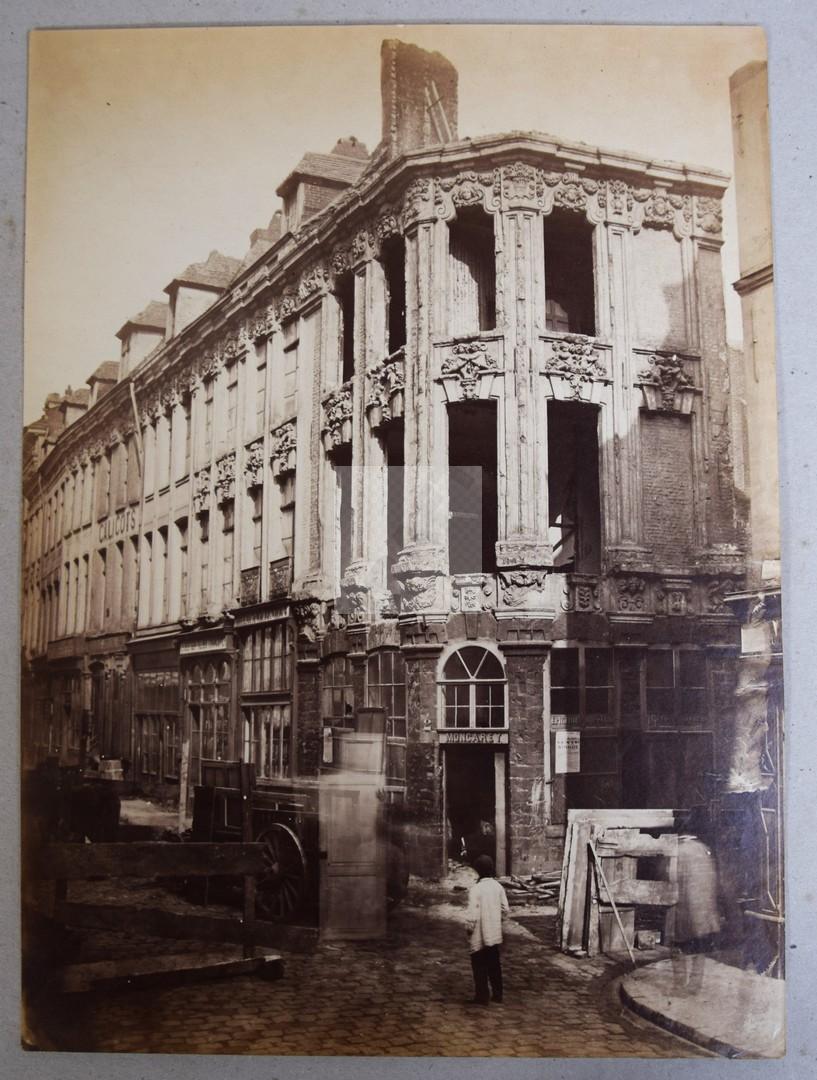 Maisons en démolition vers 1870, épreuve sur papier albuminé d’après négatif sur verre au collodion, 34,5/25cm., très belle épreuve.