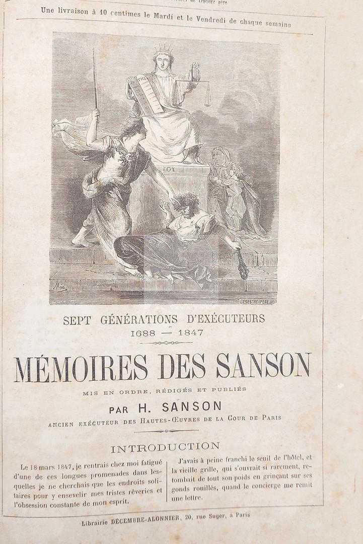 Lot n°248 - 248 H. Sanson. Sept générations d'exécuteurs 1688-1847, mémoires des Sanson. P., Librairie