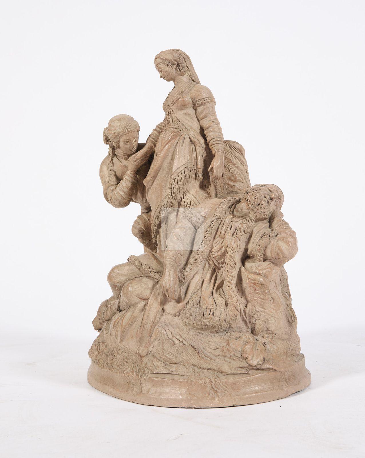 Groupe sculpté en terre de Lorraine,