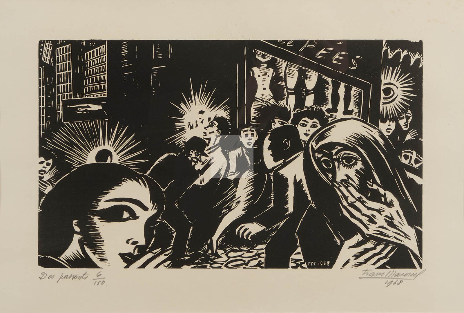 Lot n°6 - 6 Frans MASEREEL (1889-1972) Des passants, 1968 Gravure sur bois, signée, titrée,