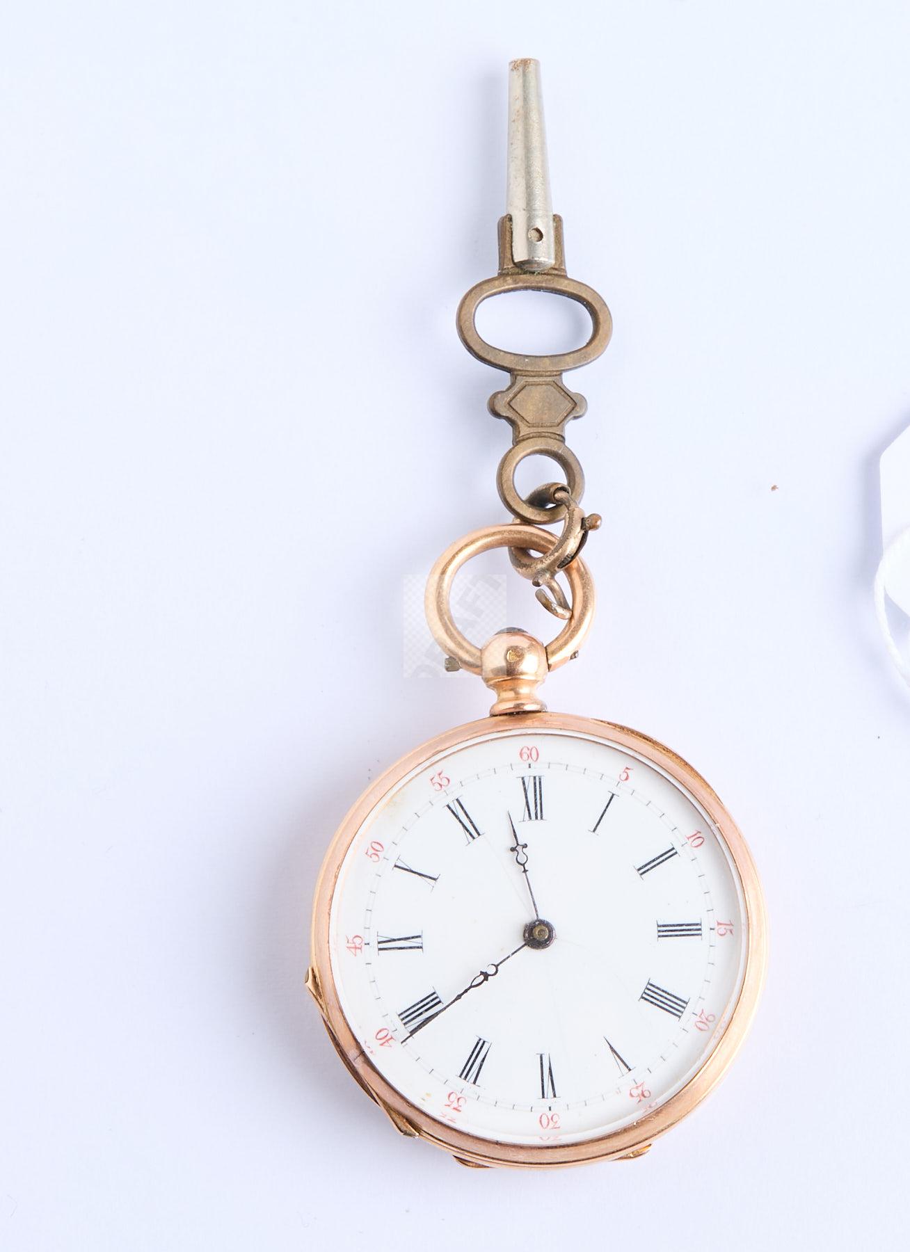 122 Montre de col en or 750 ‰ vers 1850, double boitier en or , gravée Mamy à Saint-Pierre-les-Calais fond gravé à écusson, petit choc, poids brut 27,6 g on joint une clé métal