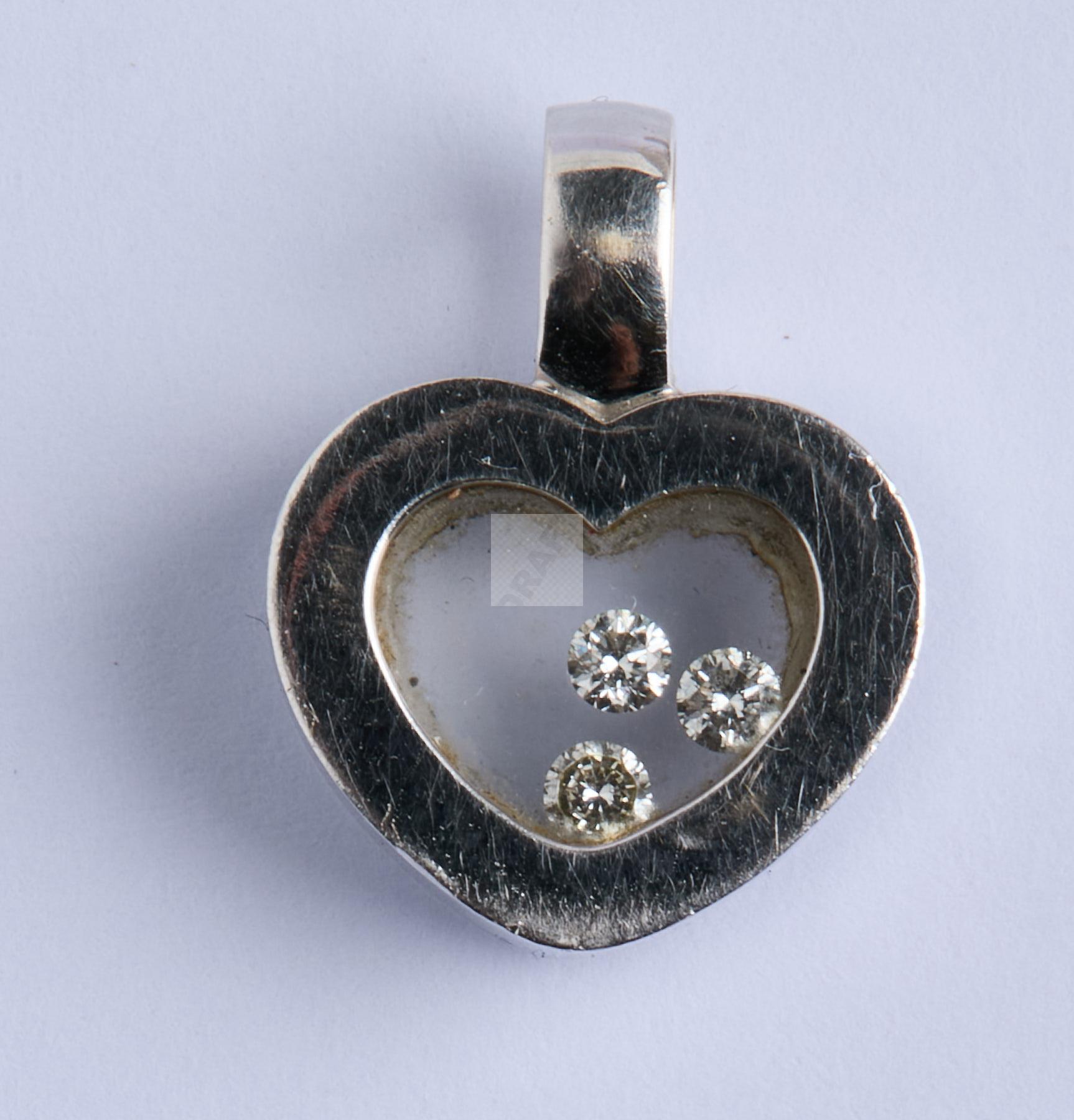Lot n°216 - 216 Bernard SYLVAIN Pendentif coeur en or gris 750/1000 avec trois
