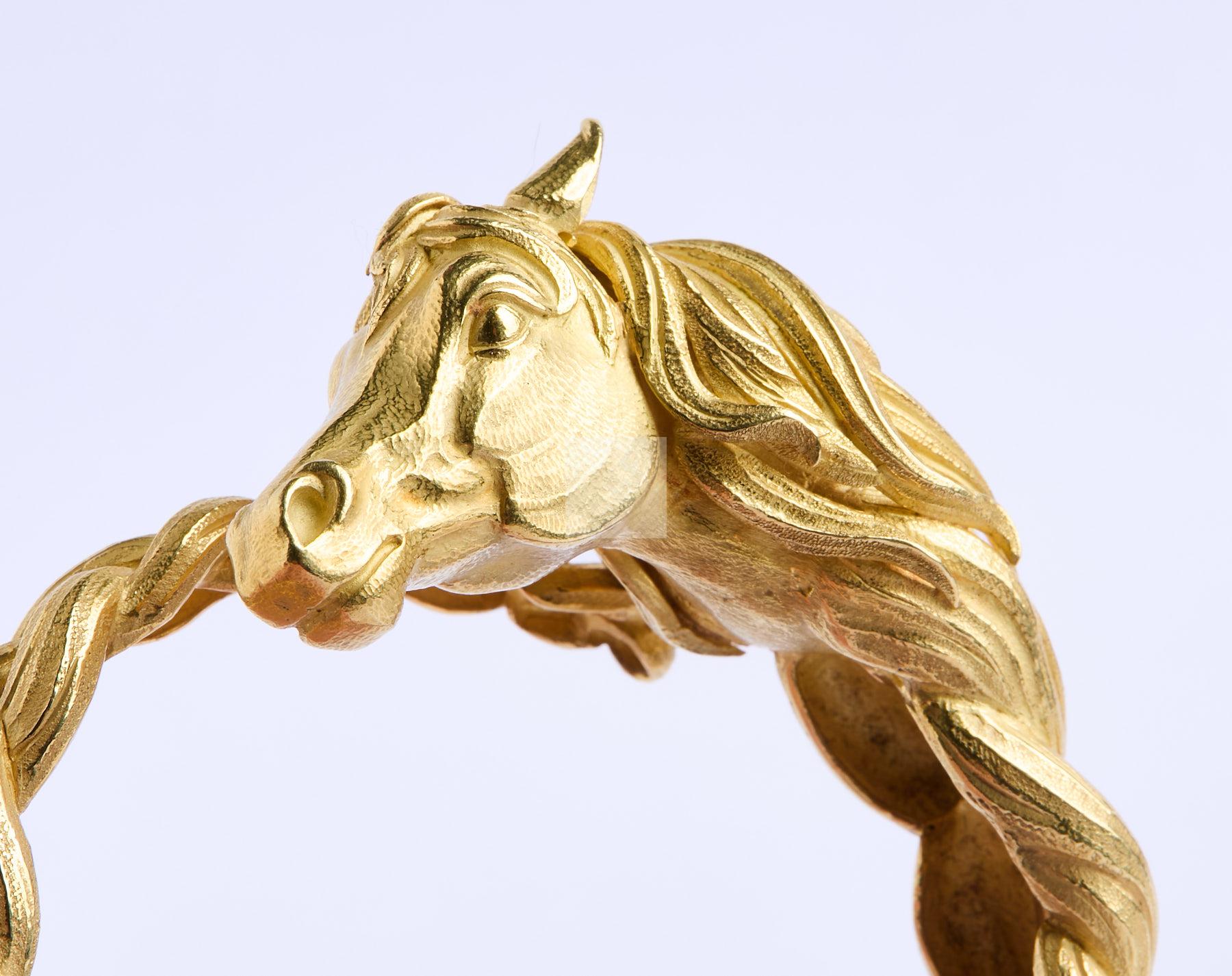 Lot n°244-B - 244 Bis HERMES : bracelet en or jaune 750/1000 modèle « tête de cheval » rigide ou