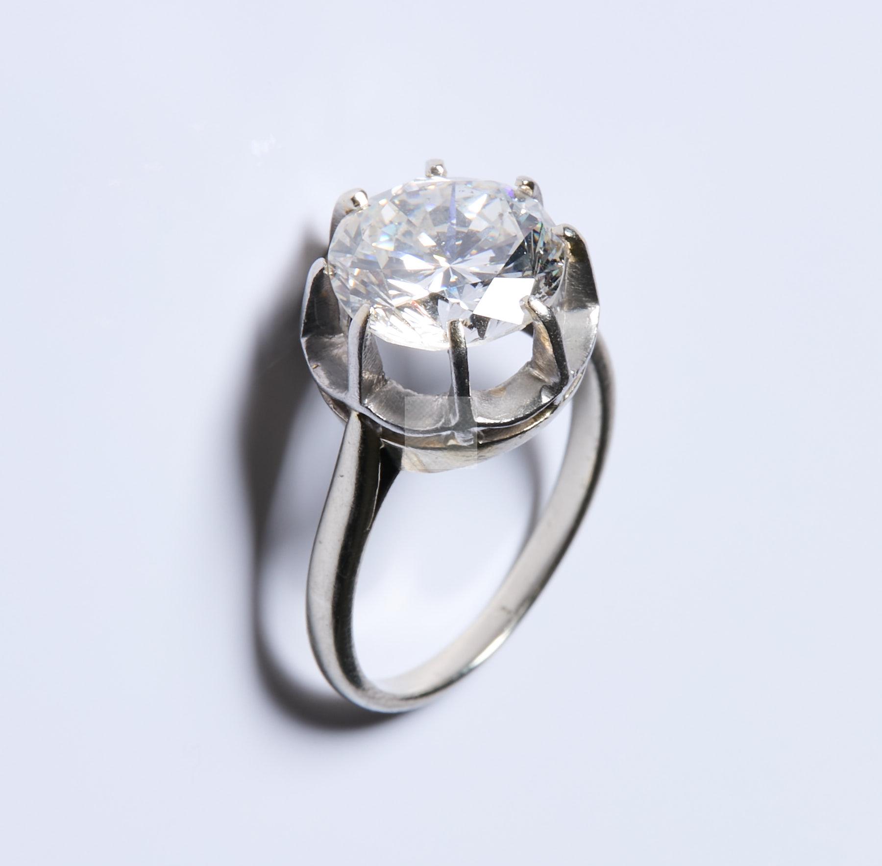 250 Bague en or 750 %° et platine accompagnée de son diamant brillanté de taille moderne démonté d’un poids de 3,87 ct accompagné de son rapport préliminaire du LFG attestant d’une couleur I et d’une pureté P1, tour de doigt 52 1/2 poids de monture 4.21 g
