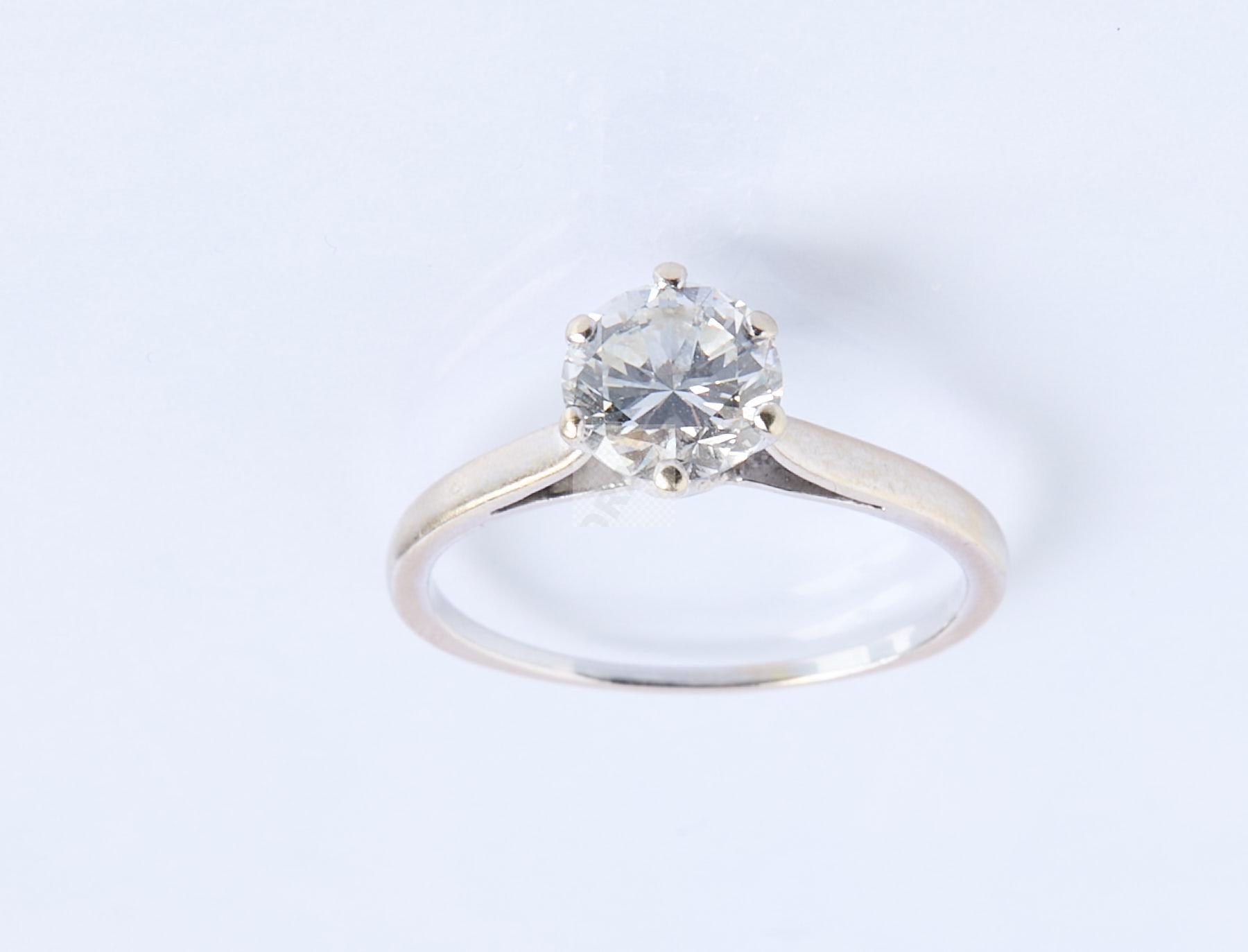 263 Bague en or gris sertie d’un diamant brillanté de taille moderne d’un poids estimé à 1,25 ct, tour de doigt 57, poids 2,76 g