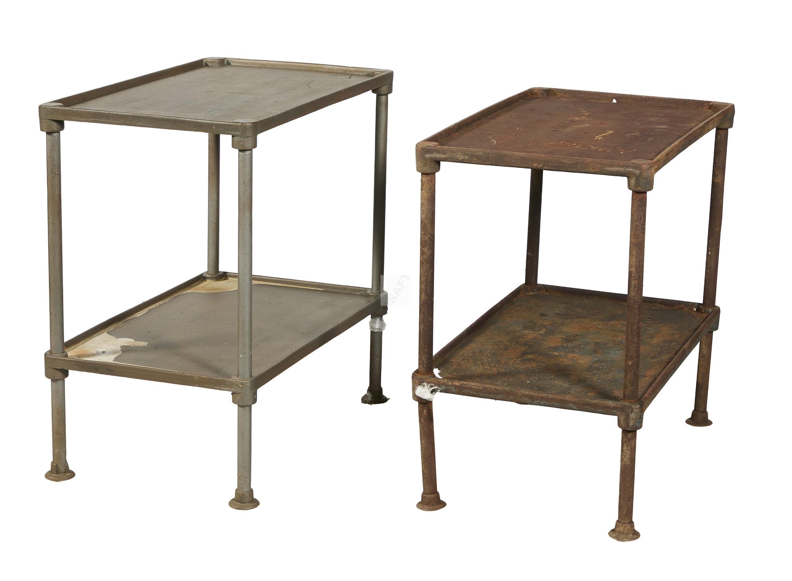 Lot n°8-A - 8 A Suite de 2 dessertes ou tables d’atelier à double plateau en fonte, état d’u