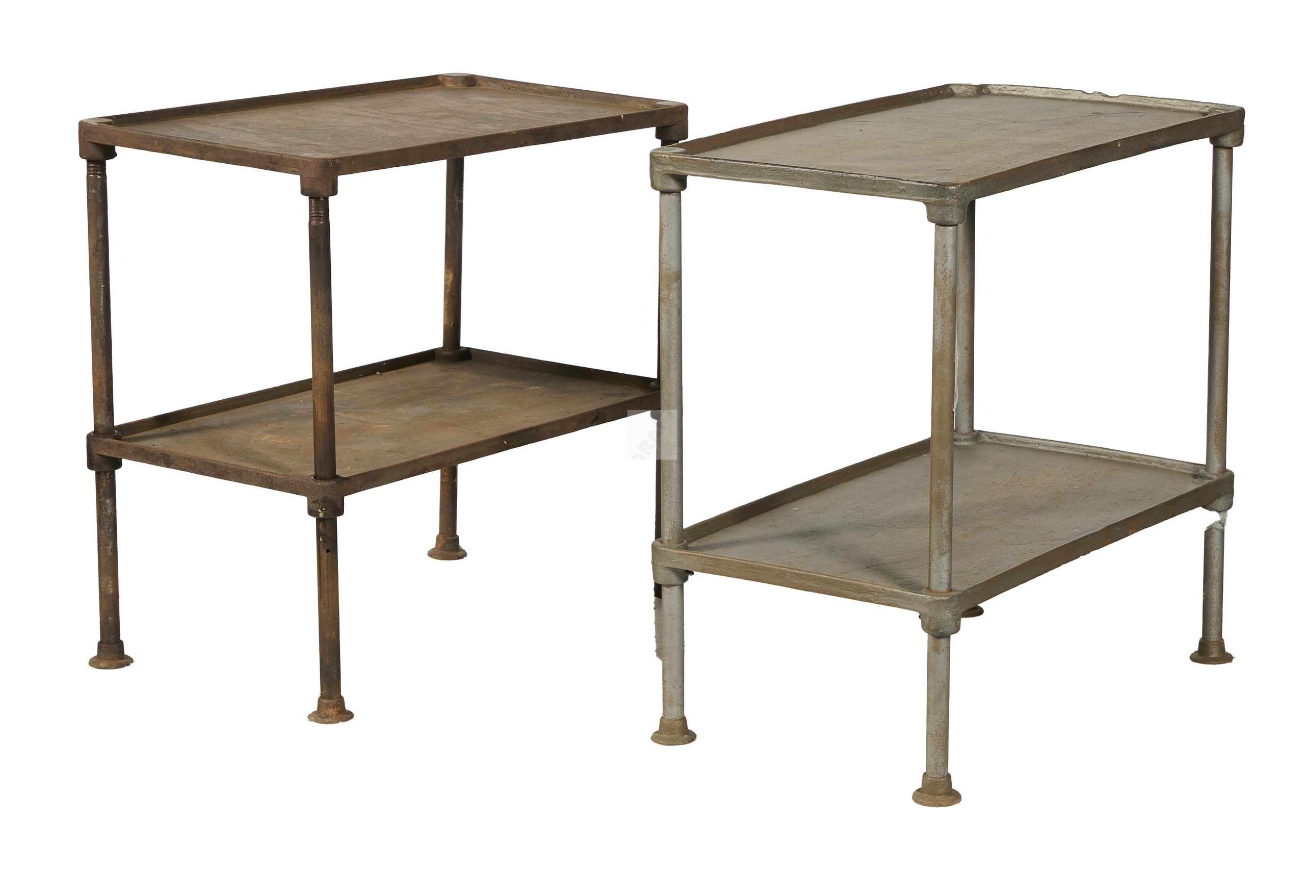 Lot n°8-C - 8 C 8 Suite de 2 dessertes ou tables d’atelier à double plateau en fonte, état d
