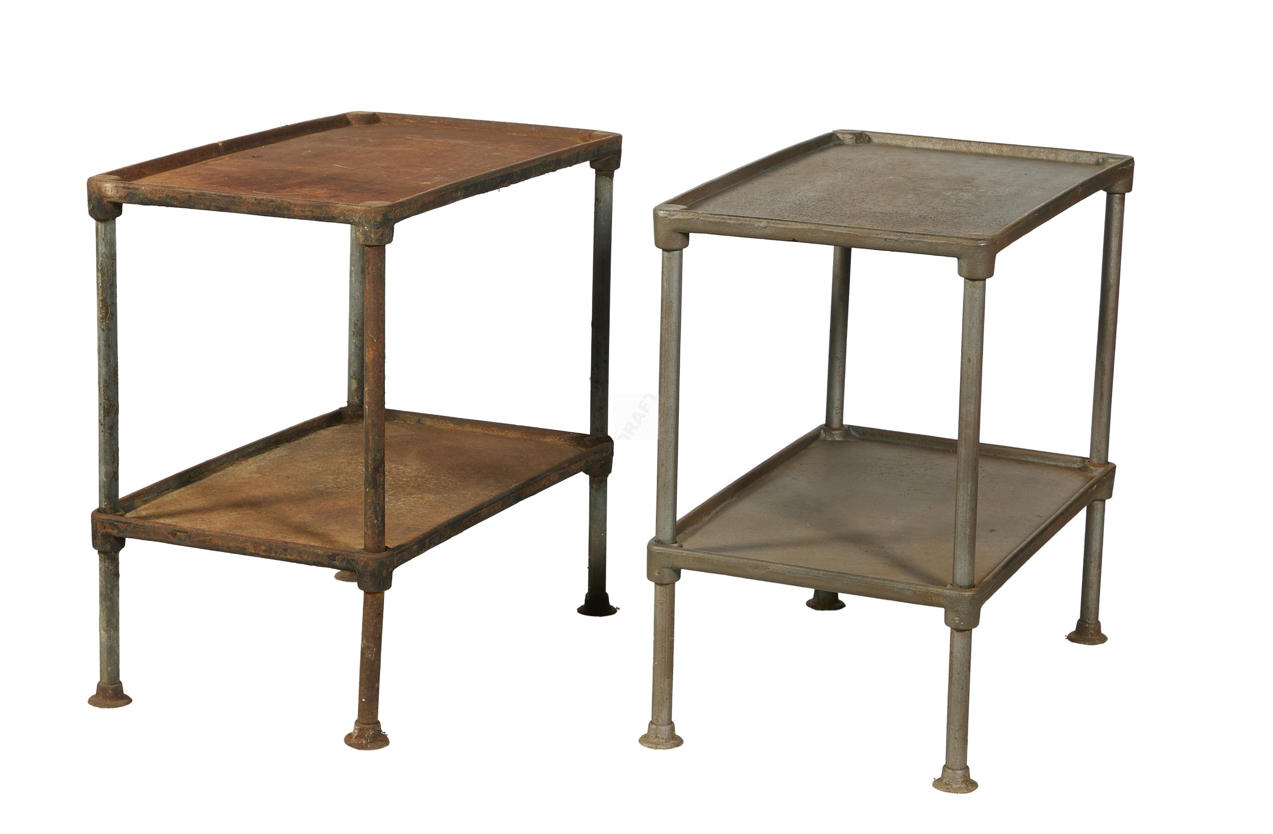 Lot n°8-E - 8 E Suite de 2 dessertes ou tables d’atelier à double plateau en fonte, état d’u