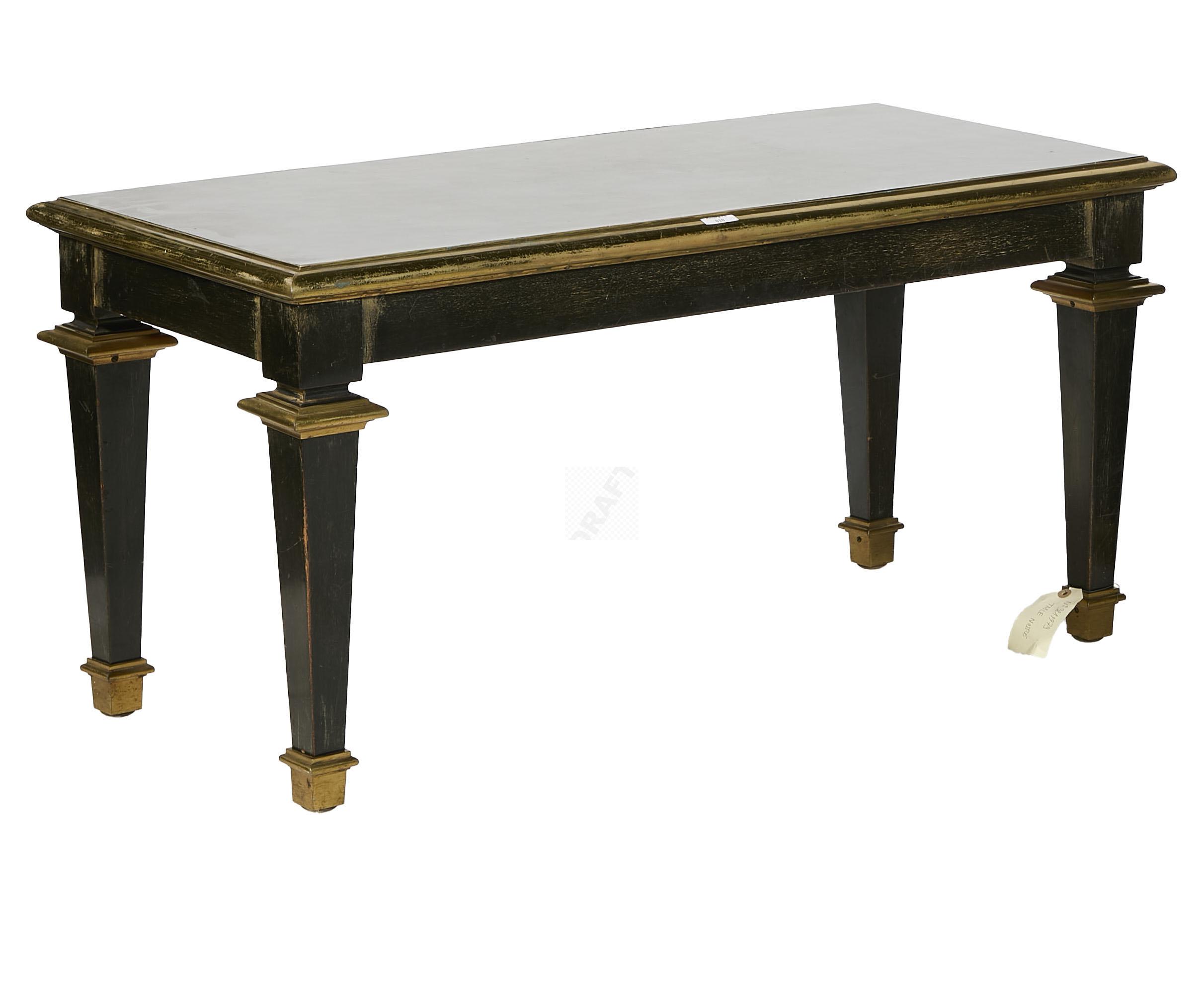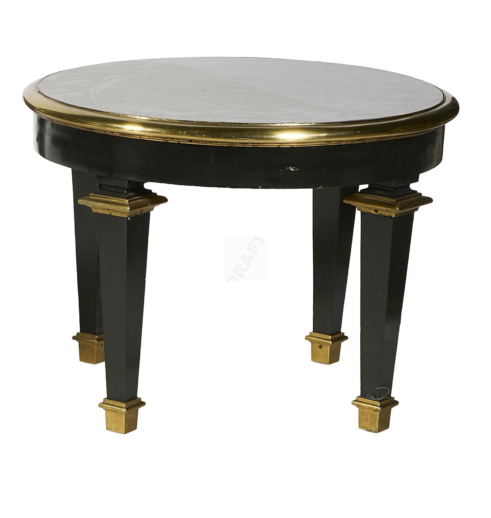 Lot n°10-A - 10 A Table basse à section ronde, en bois noirci, lingotières en bronze et monta