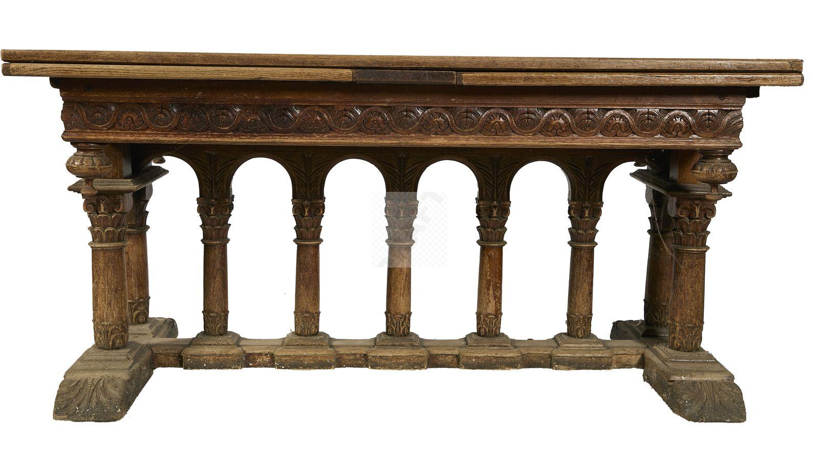 Lot n°41 - 41Une table ovale à allonges de style Henri II, accidents au piètement, 73x158x1