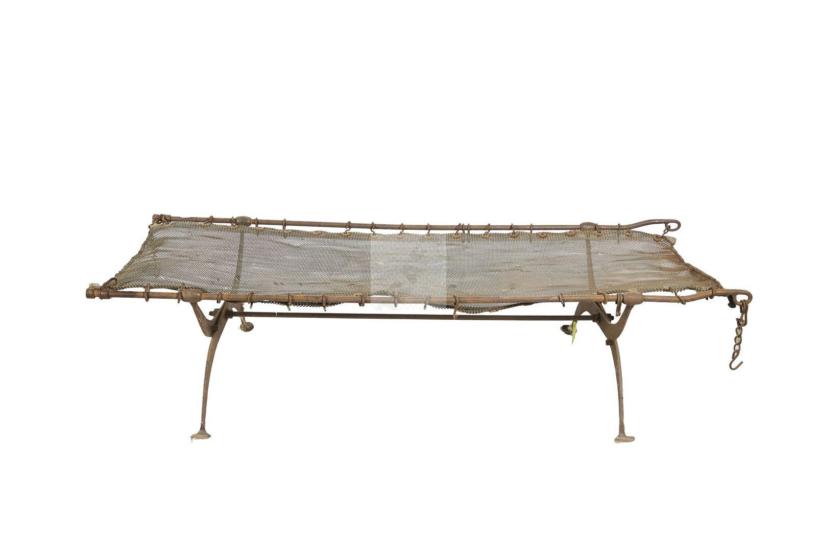 Lot n°67 - 67 Suite de six lits de campagne à structure en X métallique et cotte de maille