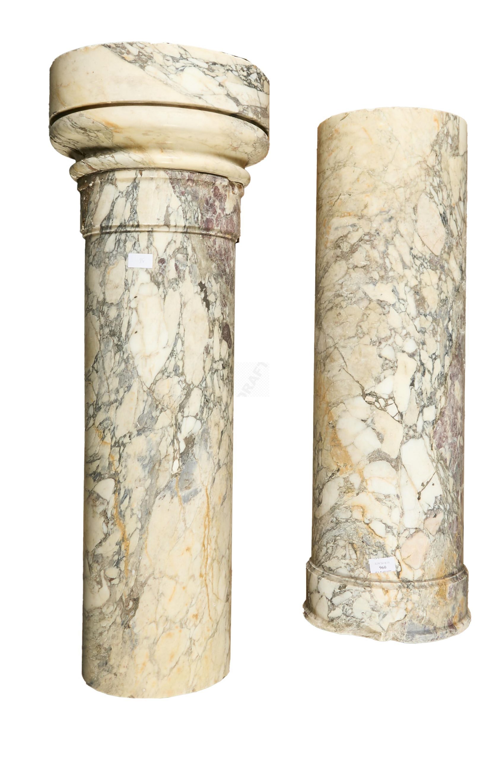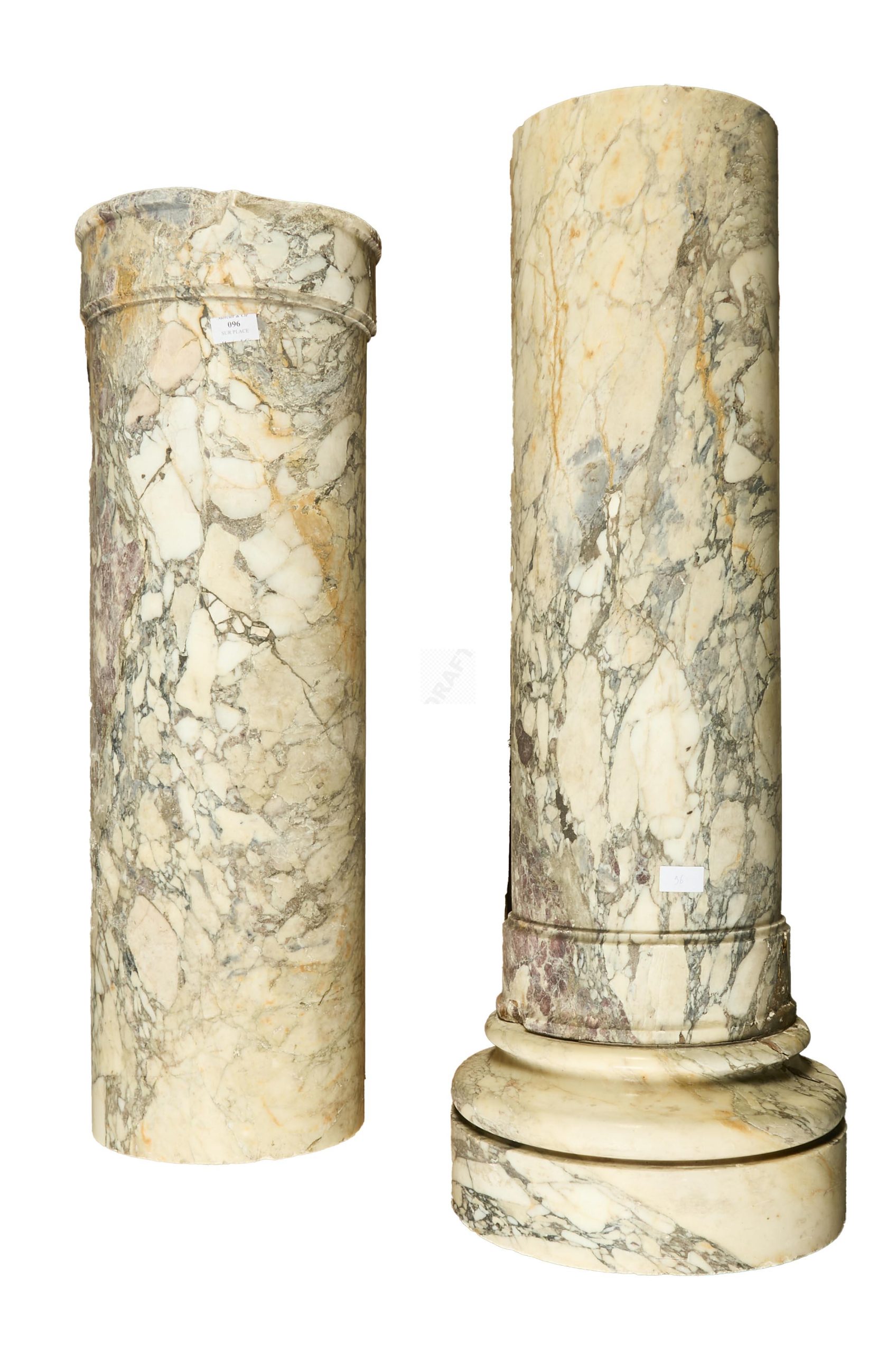Lot n°96 - 96 Colonne en deux parties en marbre veiné (petits accidents, fentes, manques et