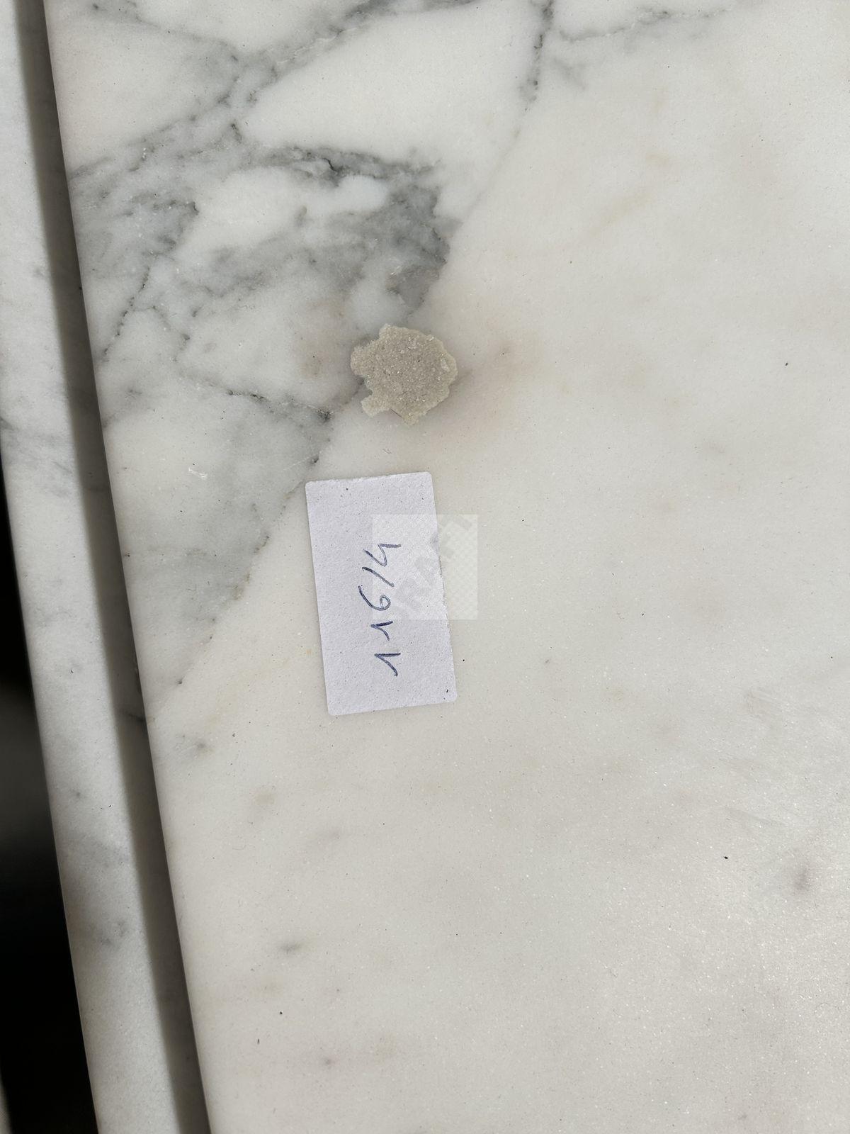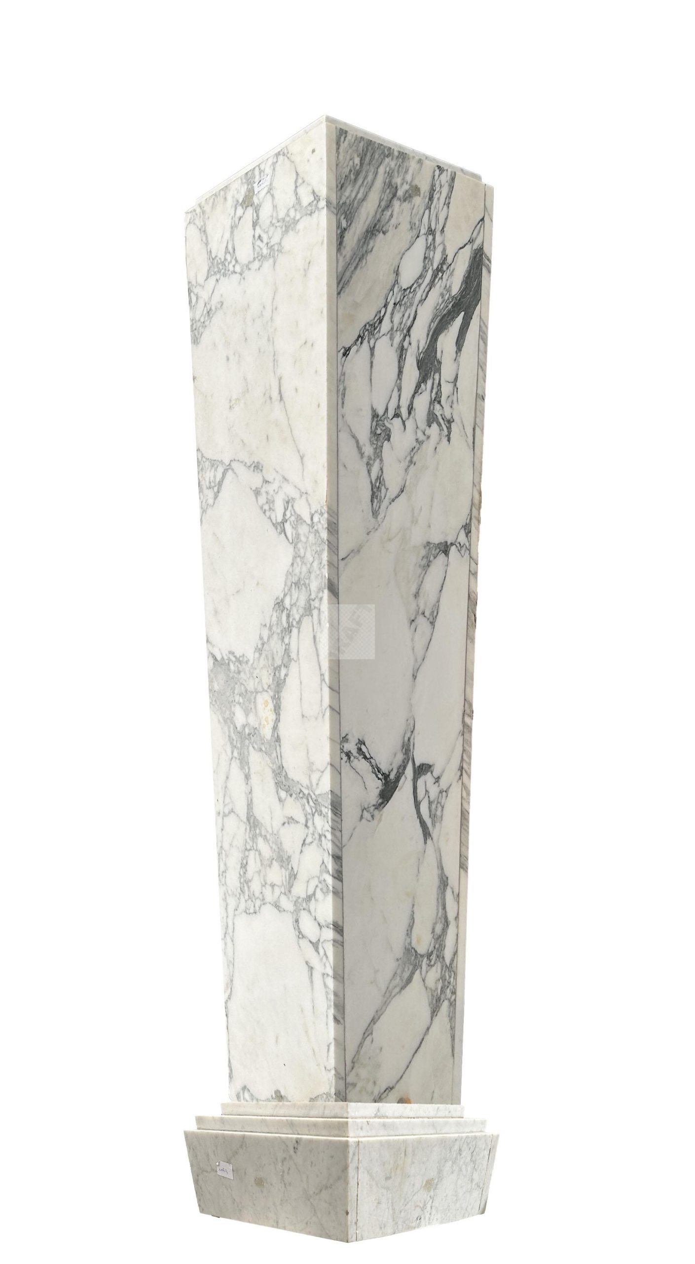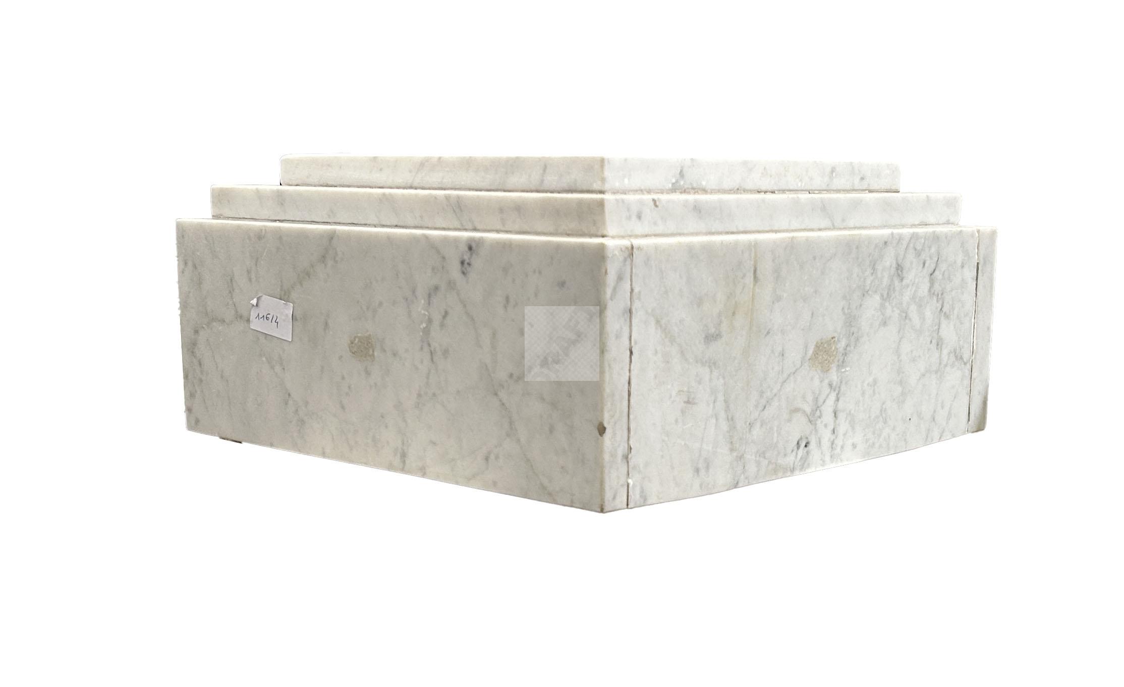 Lot n°116 - 116 Paire de gaines formées de plaques de marbre blanc veiné gris, socles à degr