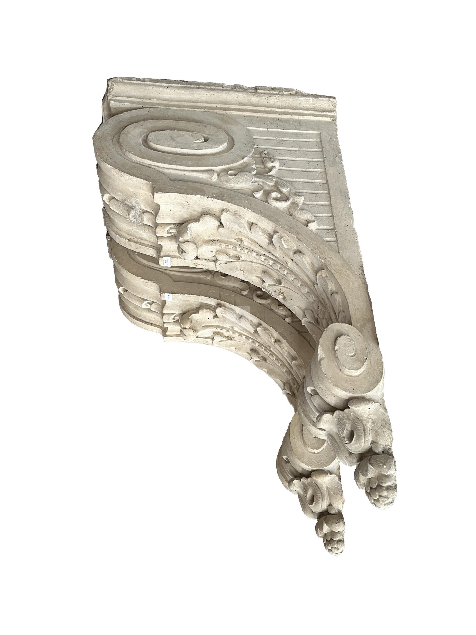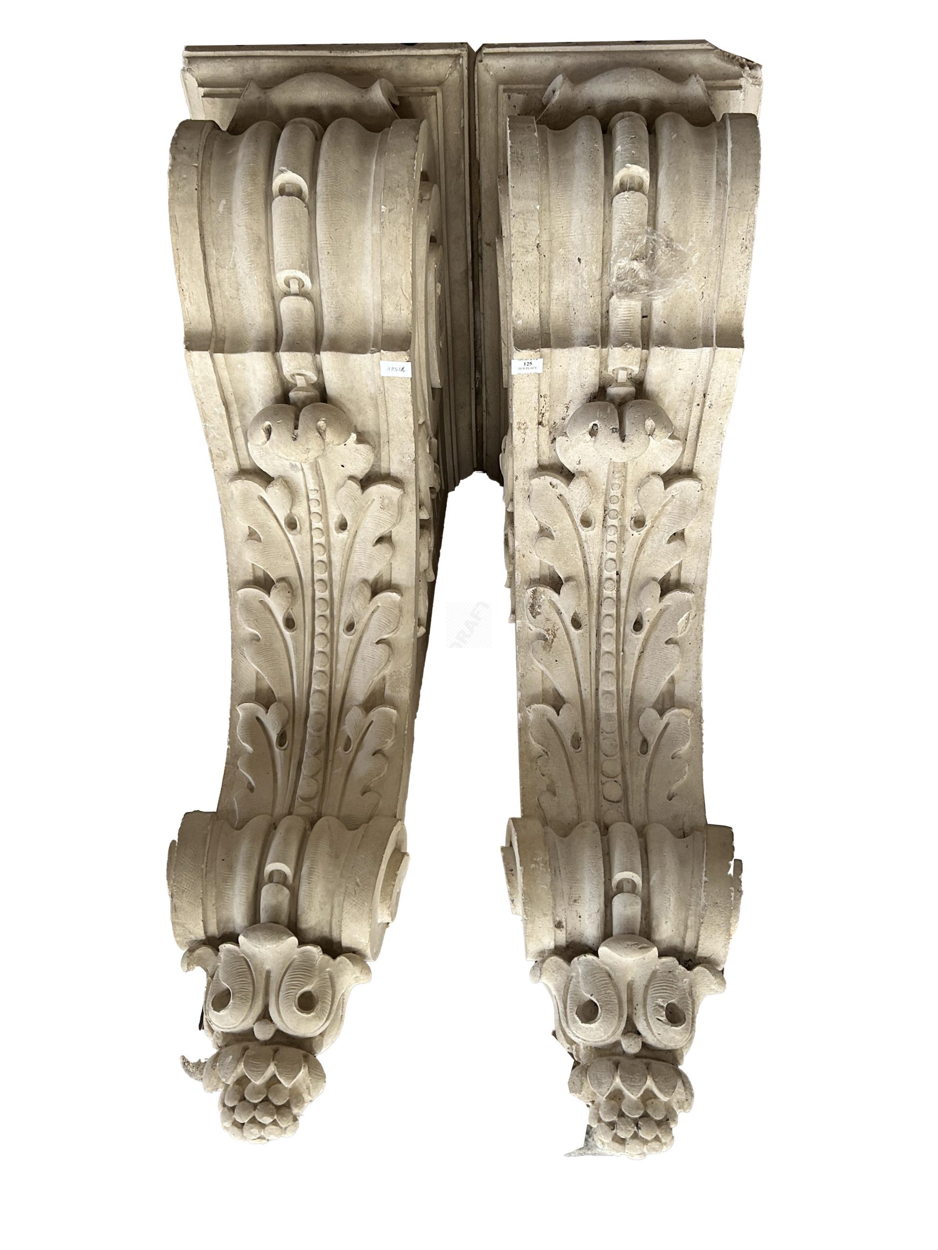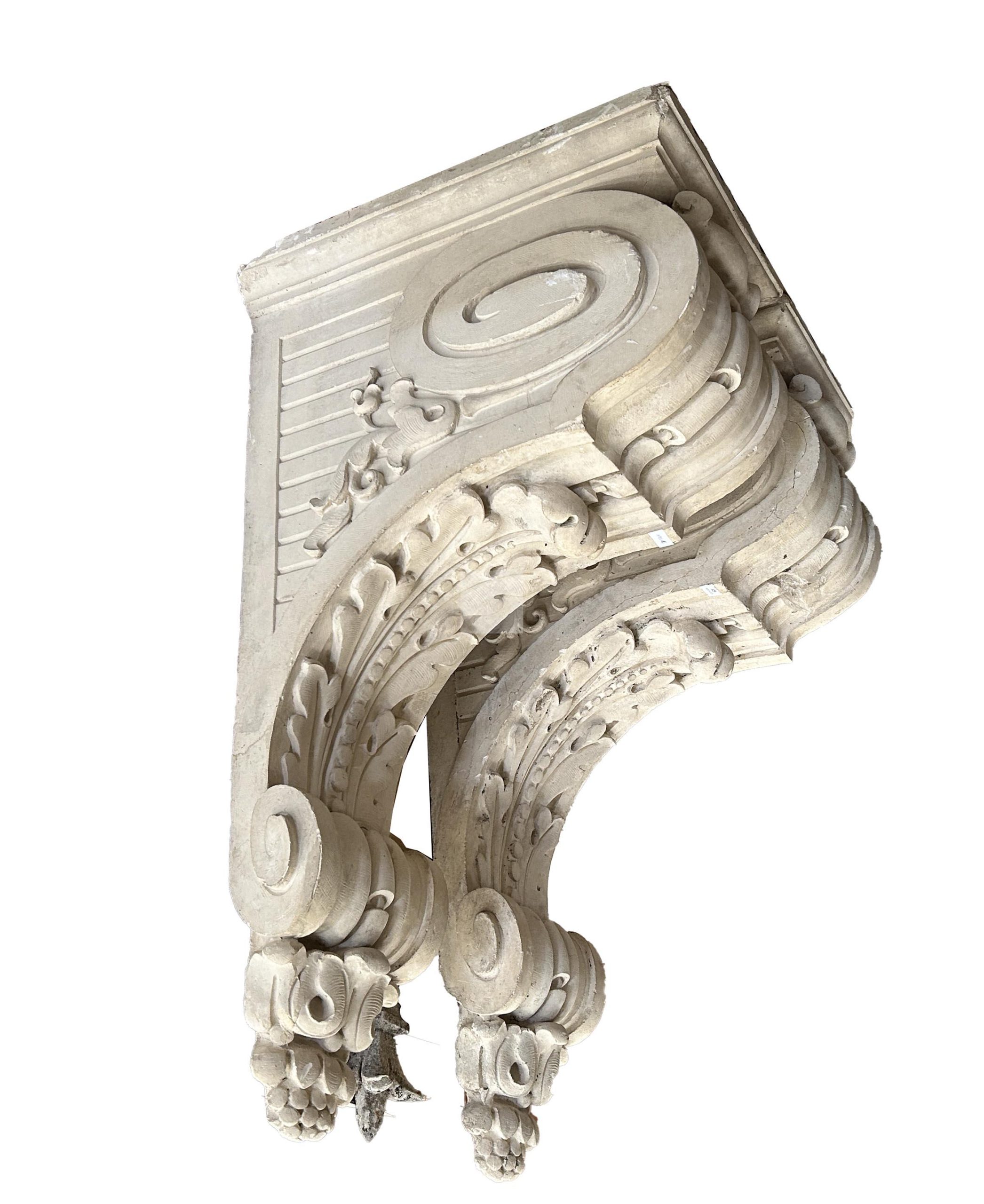 Lot n°125 - 125 Paire d’importantes consoles en plâtre à motifs d’enroulements et feuillages