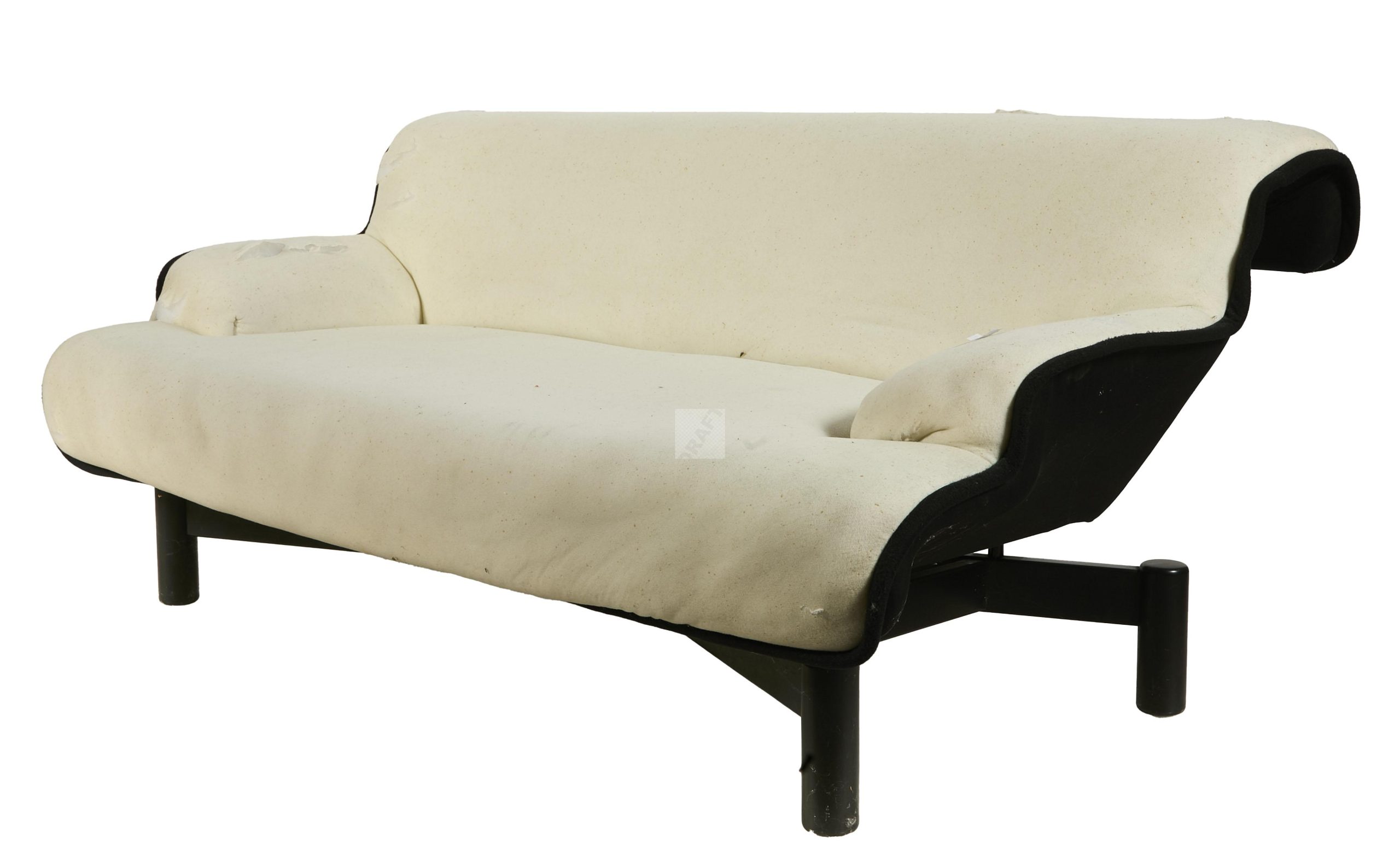 Lot n°128 - 128 Cassina : banquette à piétement en bois laqué noir entretoisé à garniture ve