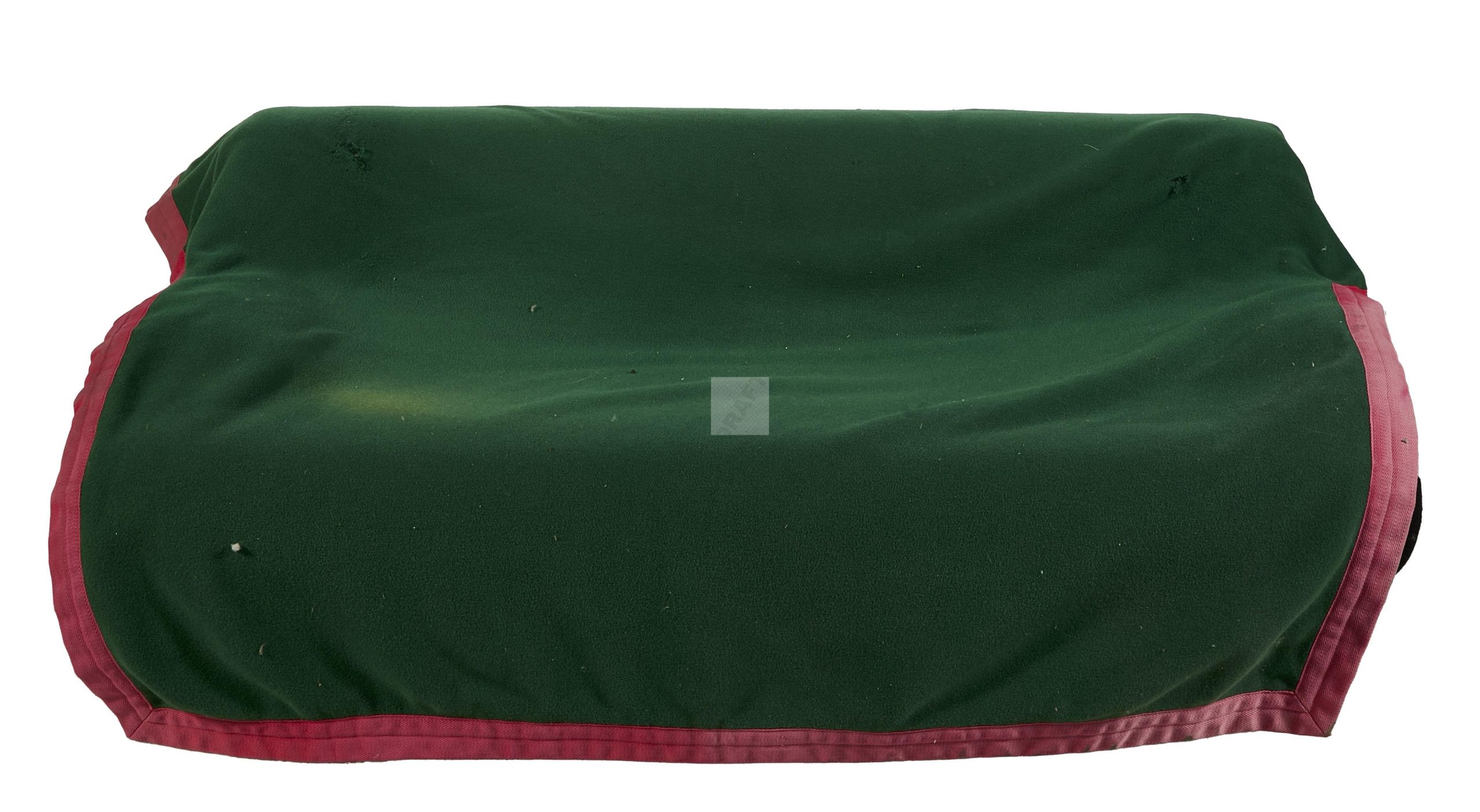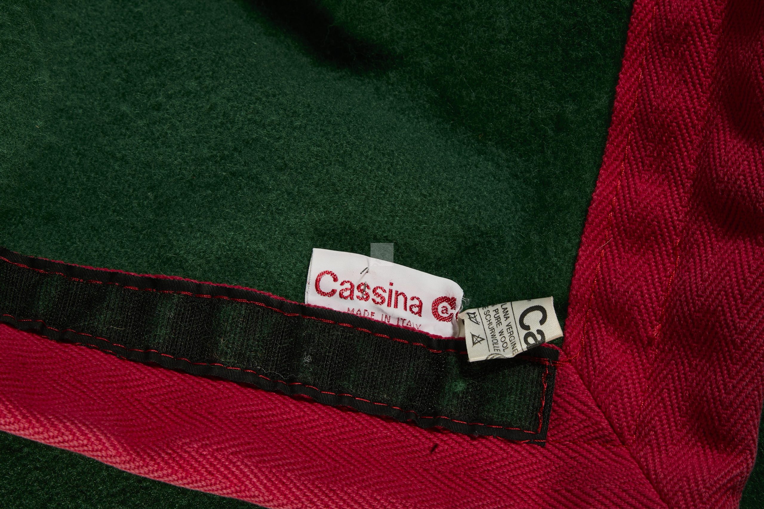 128 Cassina : banquette à piétement en bois laqué noir entretoisé à garniture verte et rose (mauvais état).