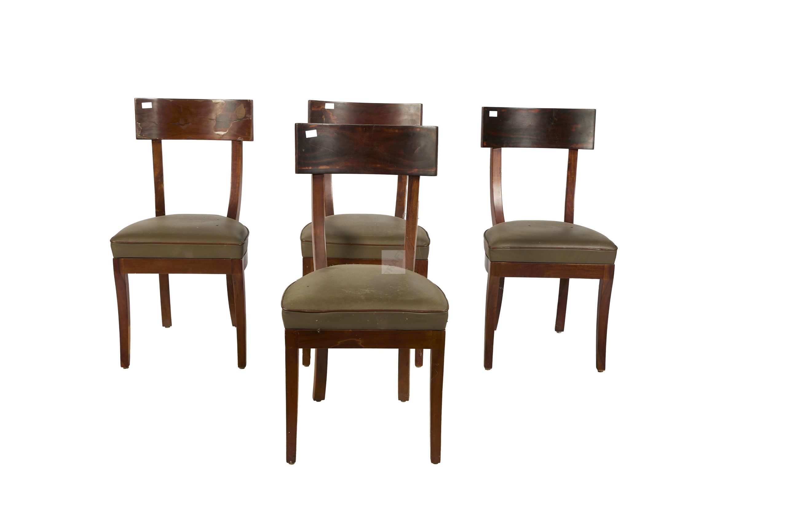 Lot n°147 - 147 Suite de quatre chaises en acajou à piétement à l’étrusque, assise en cuir s