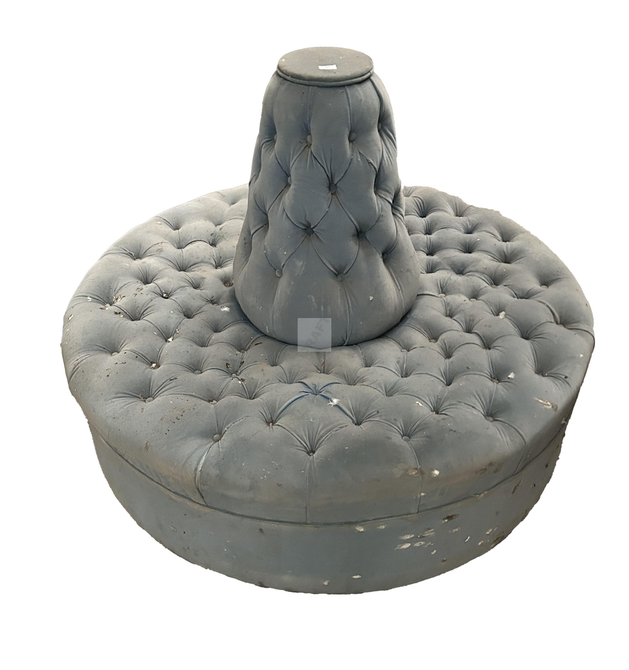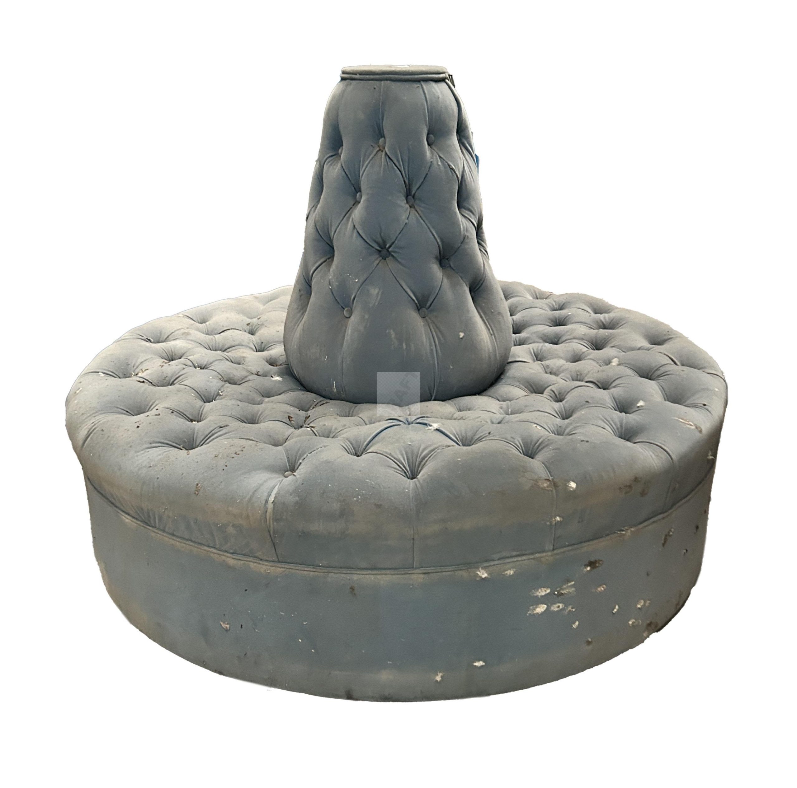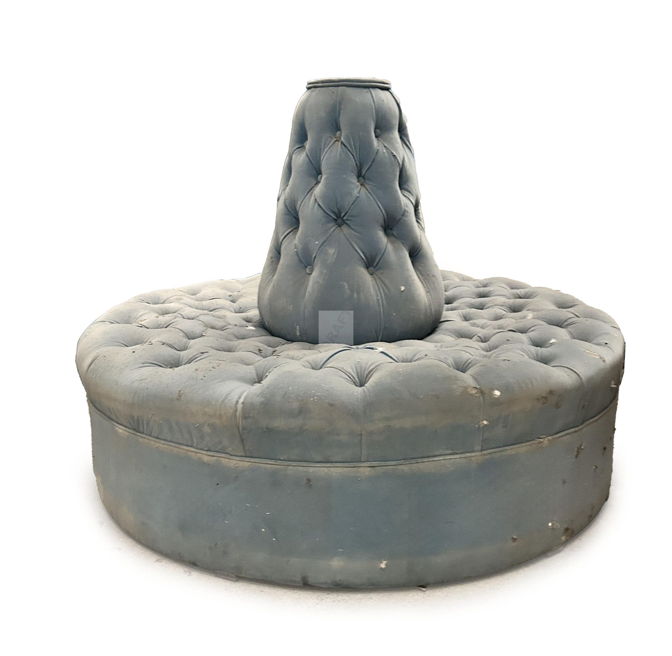 184 Deux canapés rond dit confidents l’un en velours capitonné bleu diam 150cm, l’autre en quatre partie, les pieds en bois noirci d’époque Napoléon III, diam 200cm, garniture en mauvais état