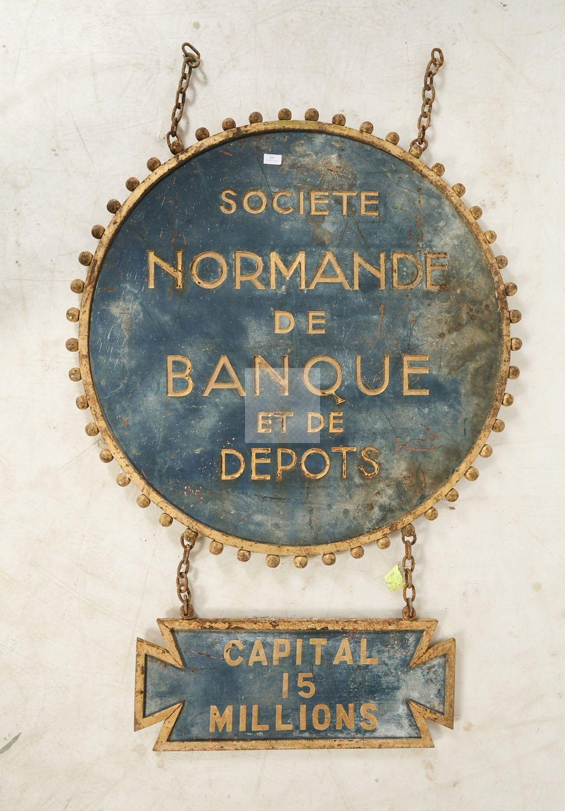 Lot n°217 - 217 Enseigne en fonte laquée et dorée « société normande de banque et de dépôt