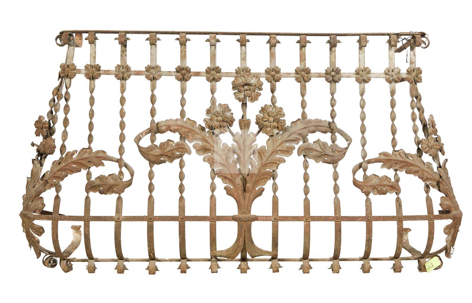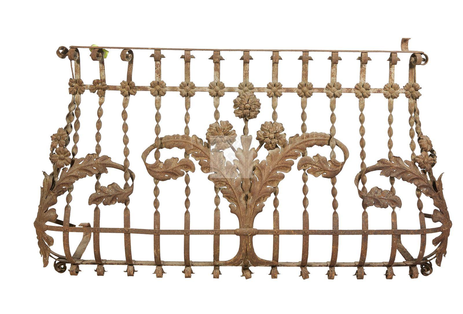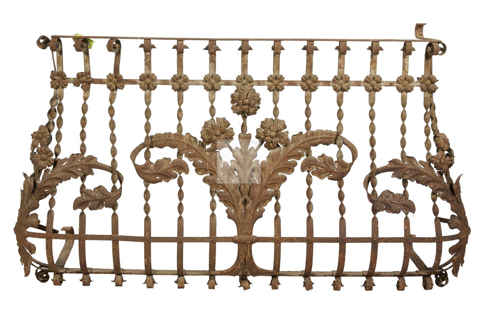 Lot n°218 - 218 Paire de rambardes en fer forgé à décor d’enroulements et fleurs épanouies,