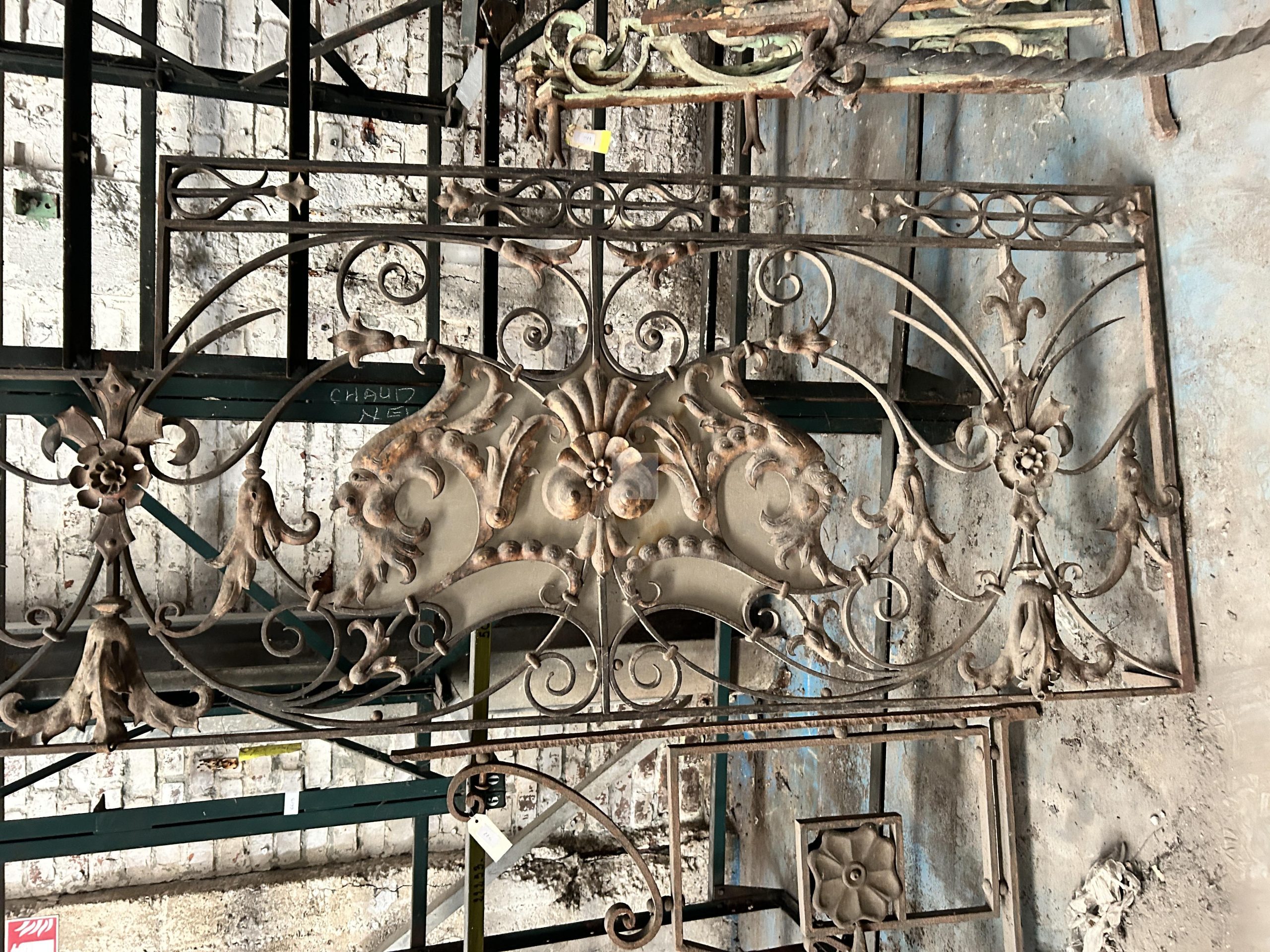 Lot n°220 - 220 Ensemble d’éléments principalement en fer forgé dont éléments de portail à m