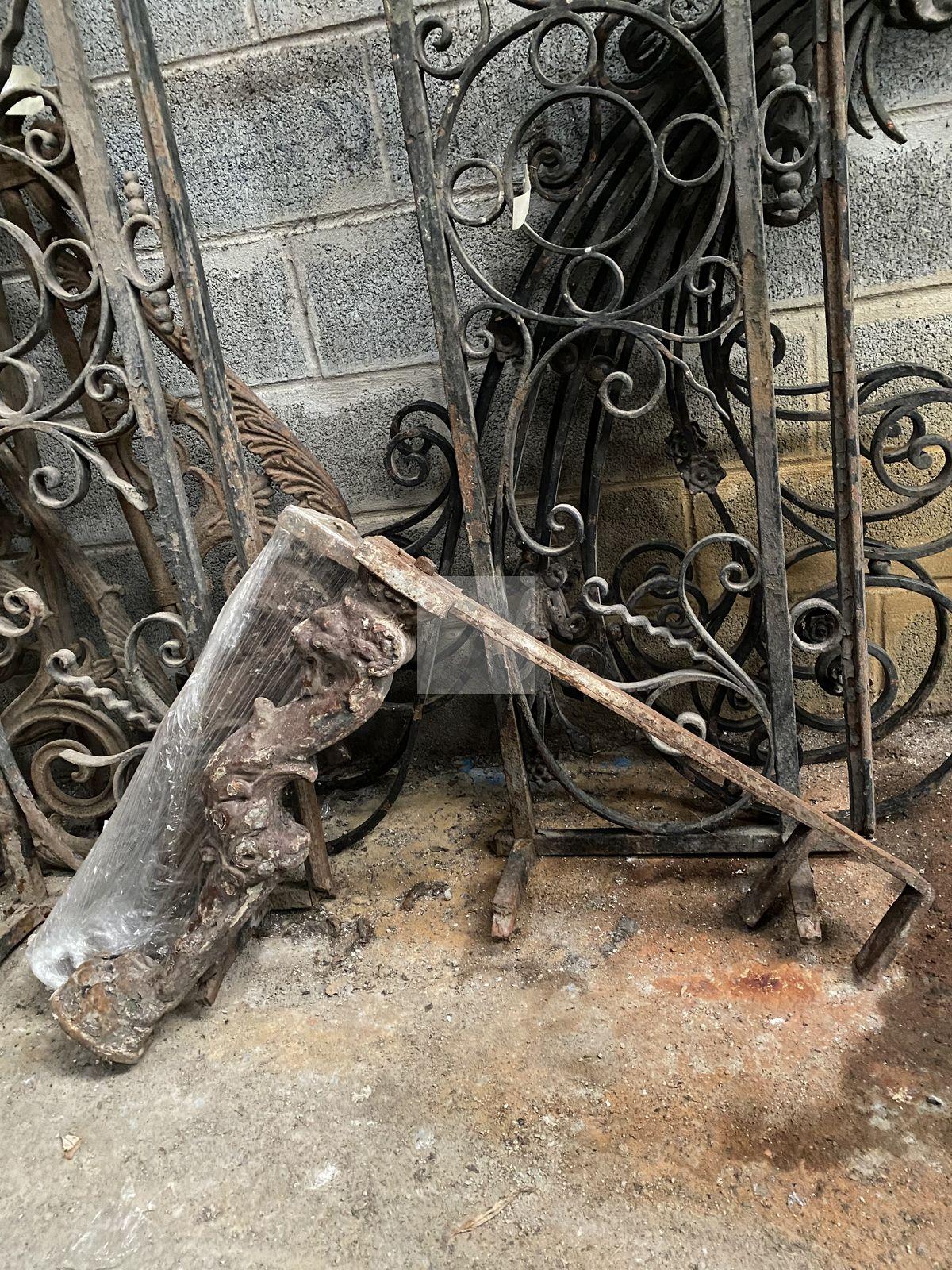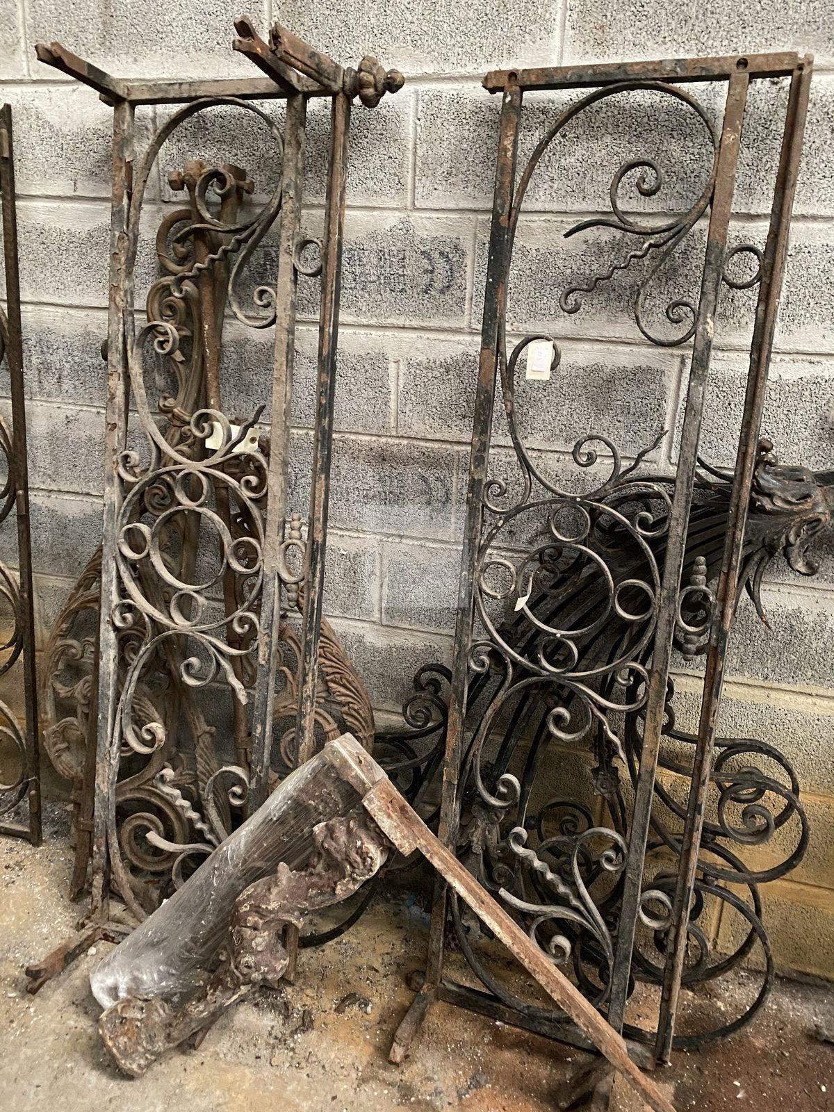 Lot n°223 - 223 Lot en fer forgé composé de trois rambardes dont une paire largeur : 164 cm,