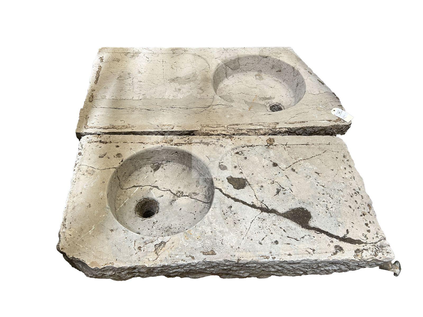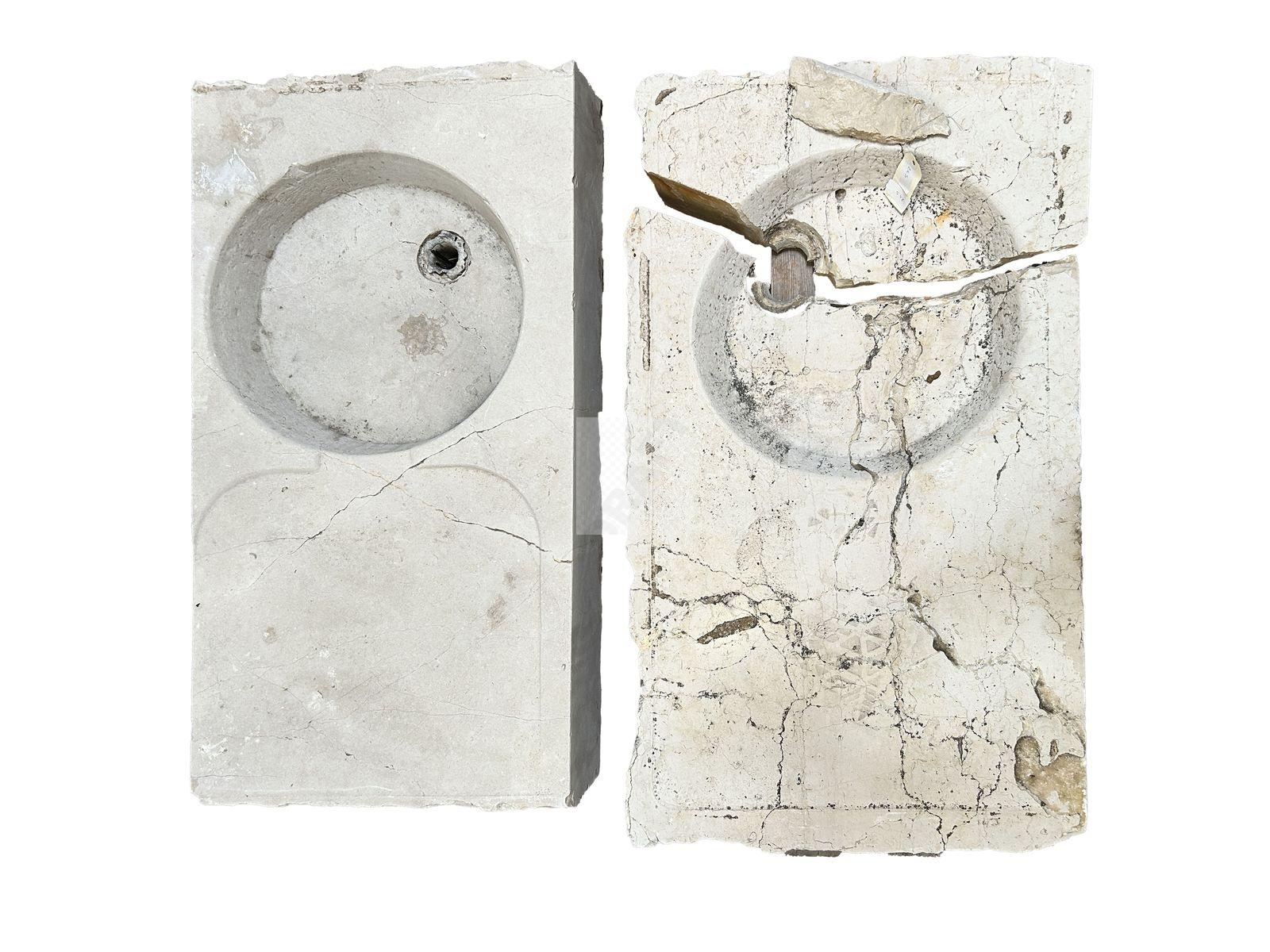 Lot n°245 - 245 Cinq éviers en pierre XIXème siècle, un fracturé, fêles et manques, dimensi