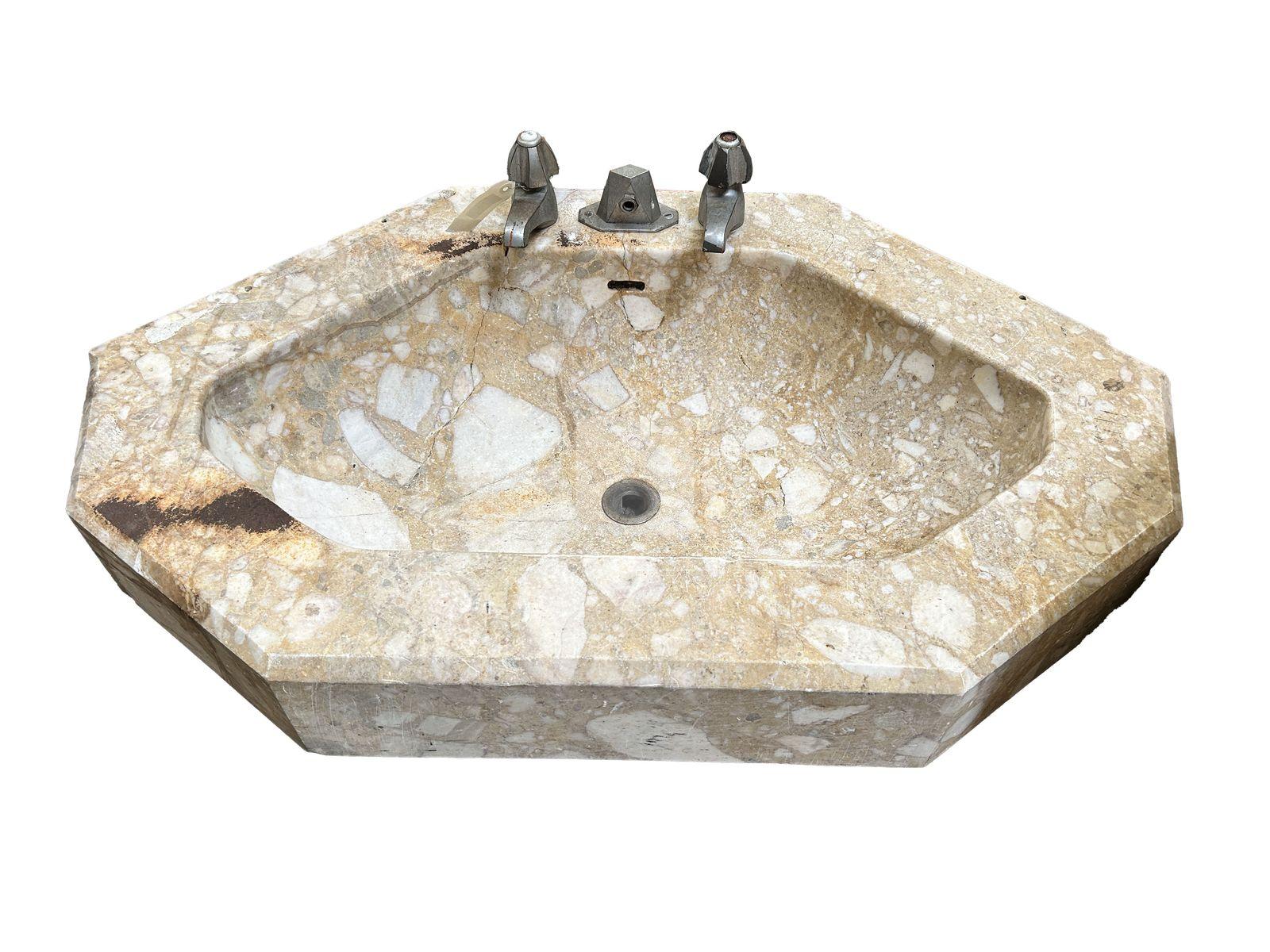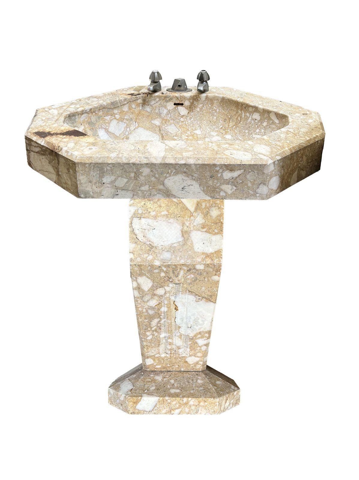 Lot n°246 - 246 Lavabo et son pied en marbre veiné avec sa robinetterie circa 1930, dim de l