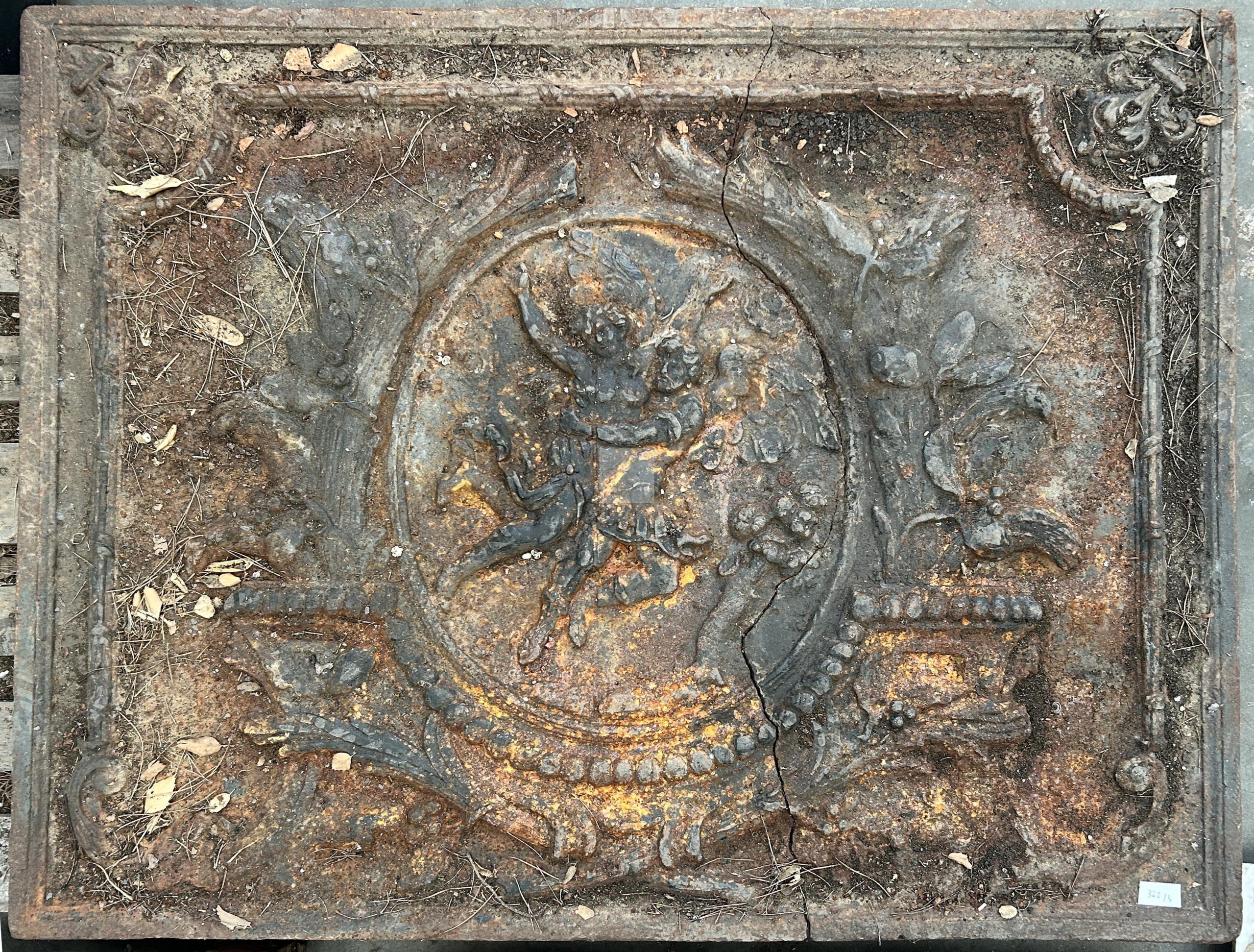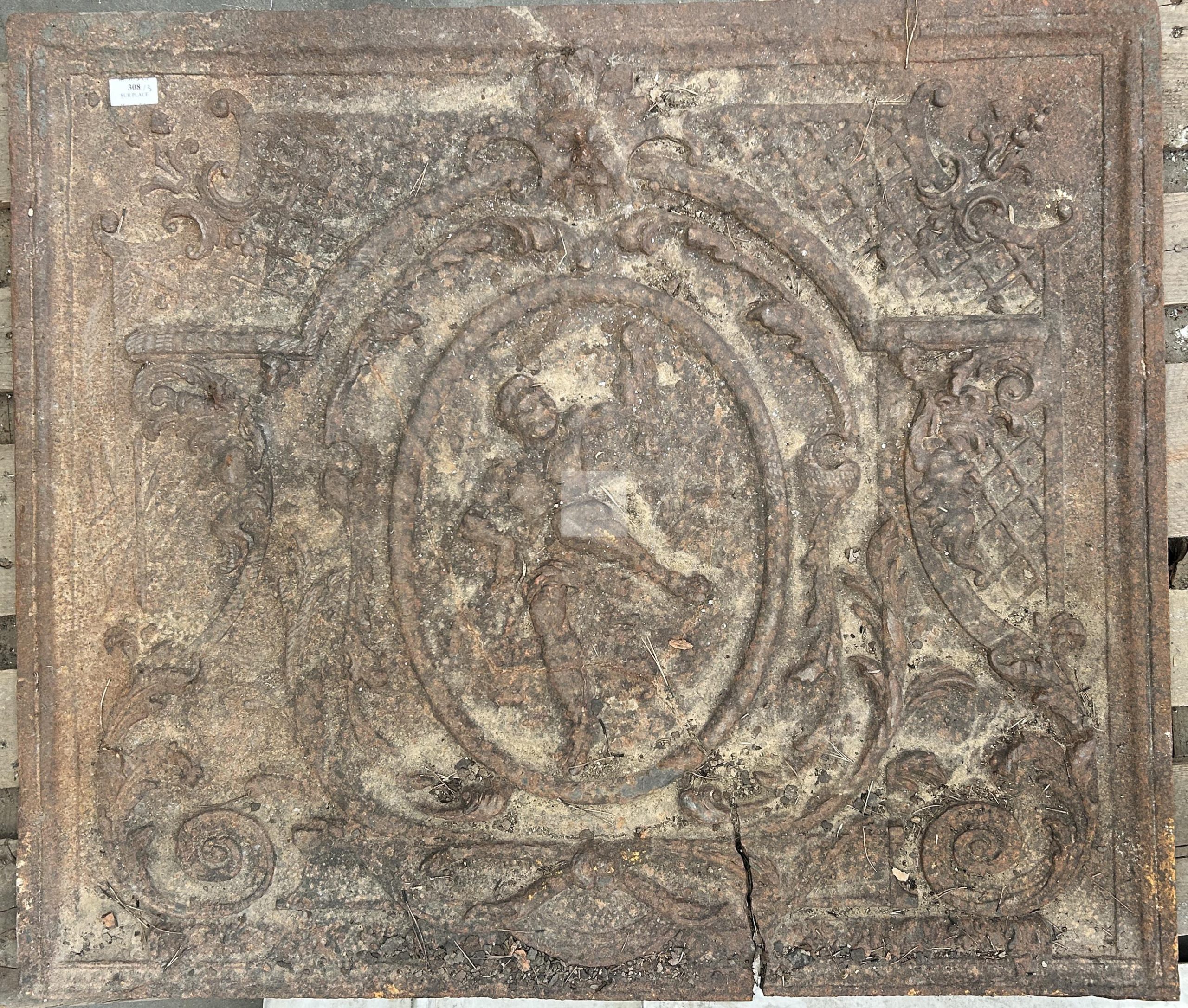 Lot n°308 - 308 Lot de trois plaques de cheminée en fonte de fer, à décor de scènes mytholog