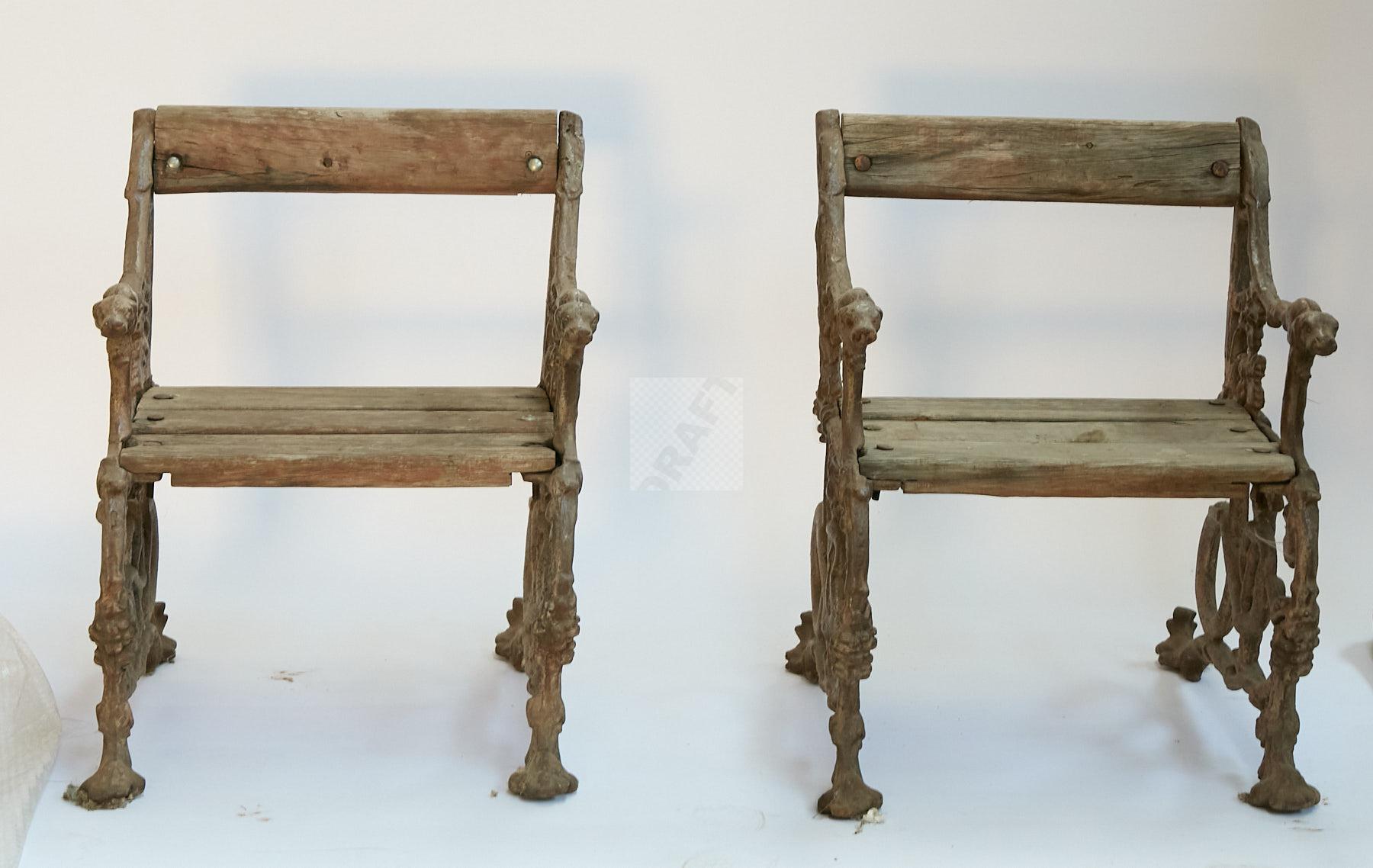 Lot n°322 - 322 Amusant mobilier de jardin en fonte de fer, à décor zoomorphe de têtes de ch