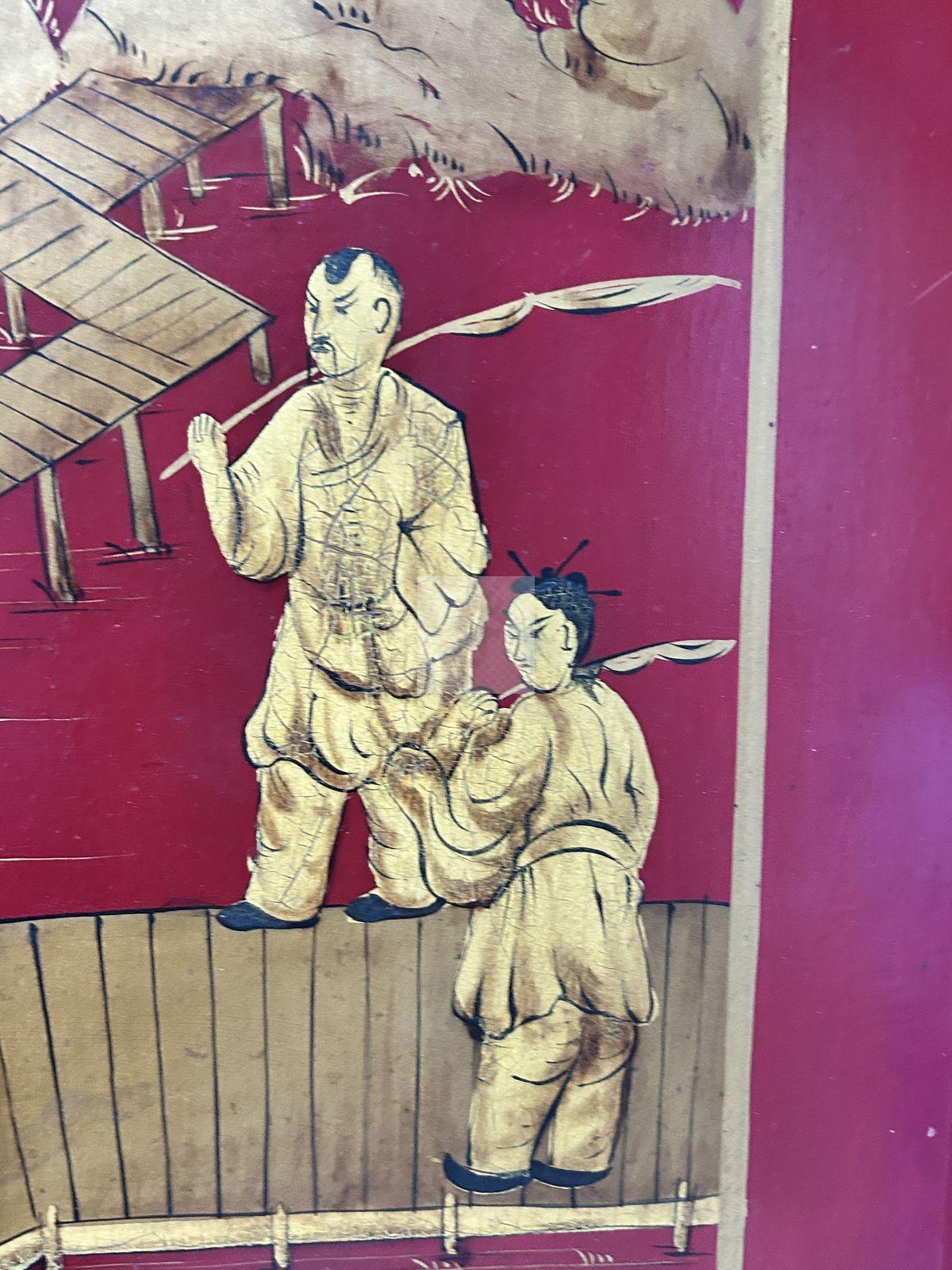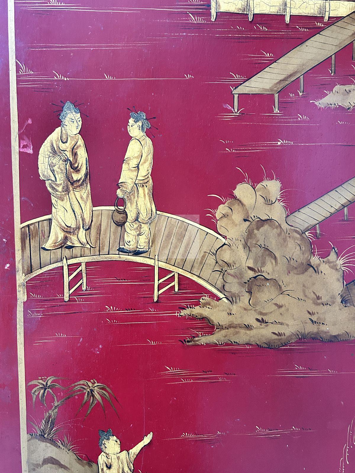 Lot n°327 - 327 Grand cabinet en bois laqué, à décor doré sur fond rouge de motifs végétaux